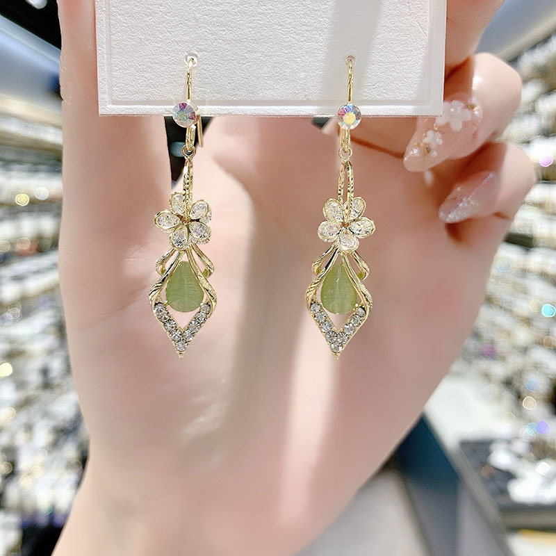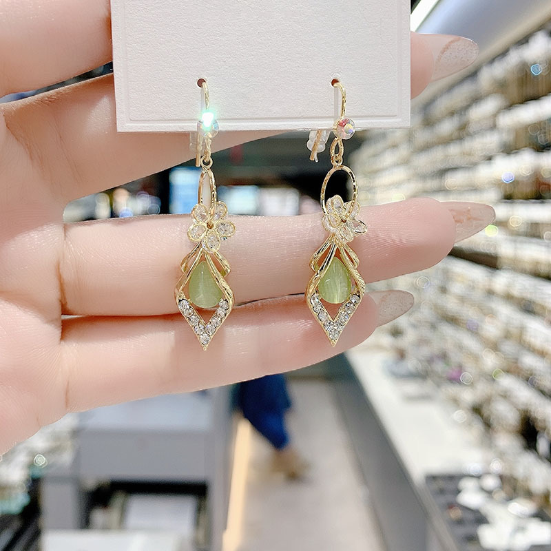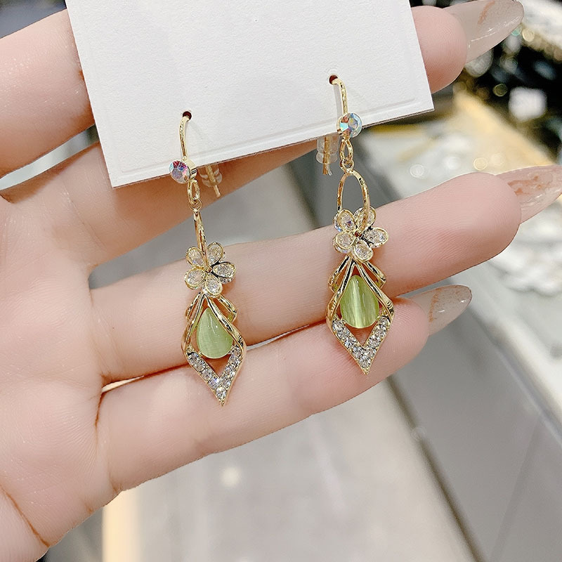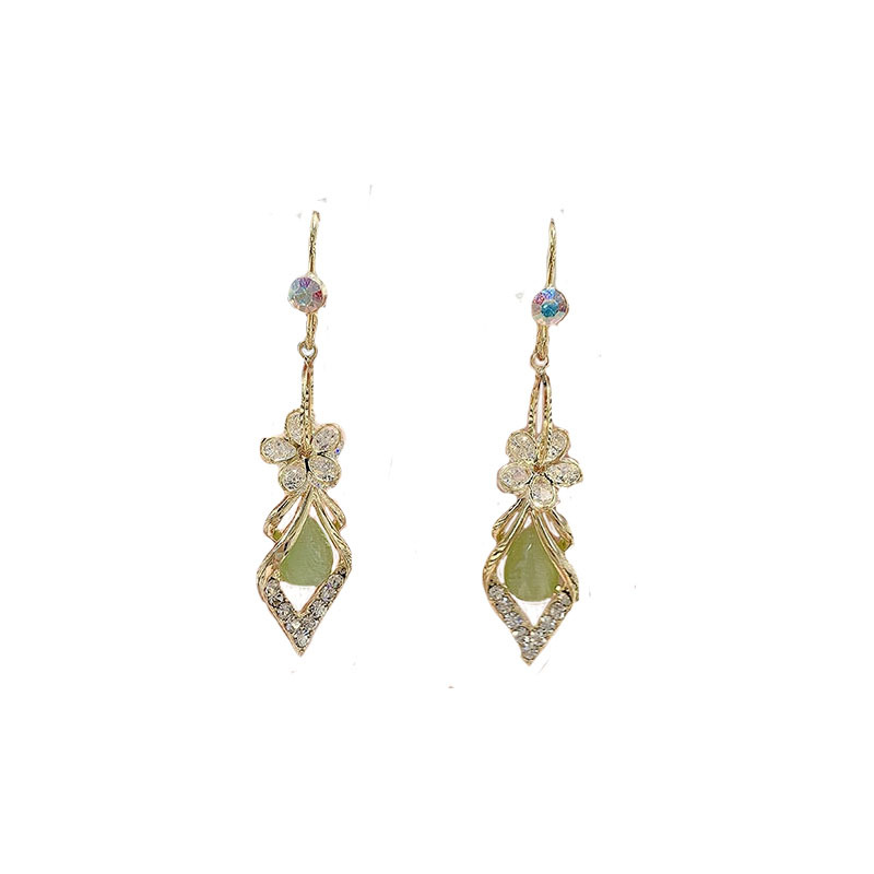 新款绿色猫眼石几何菱形耳环茶色高级感甜美耳饰百搭气质耳坠