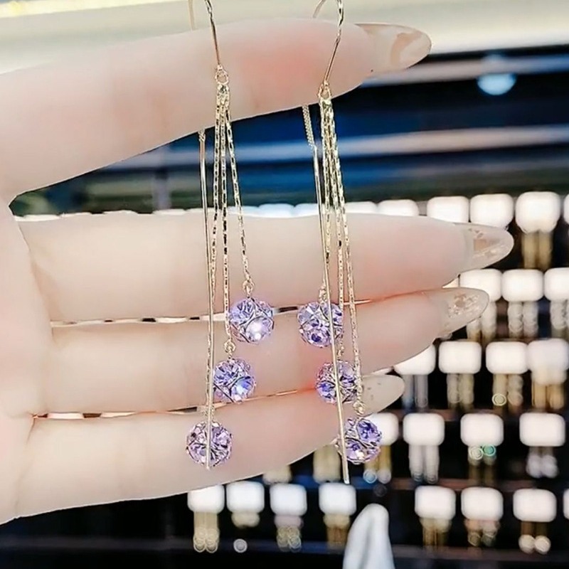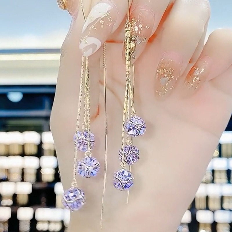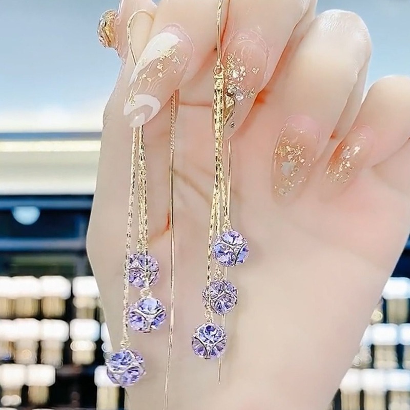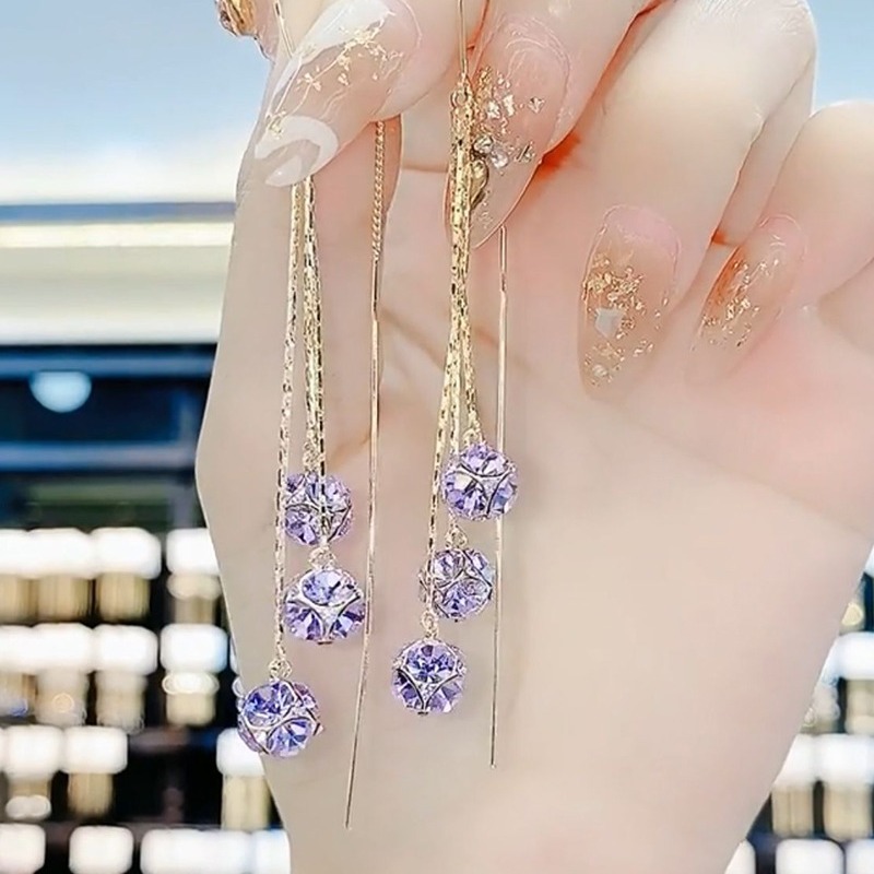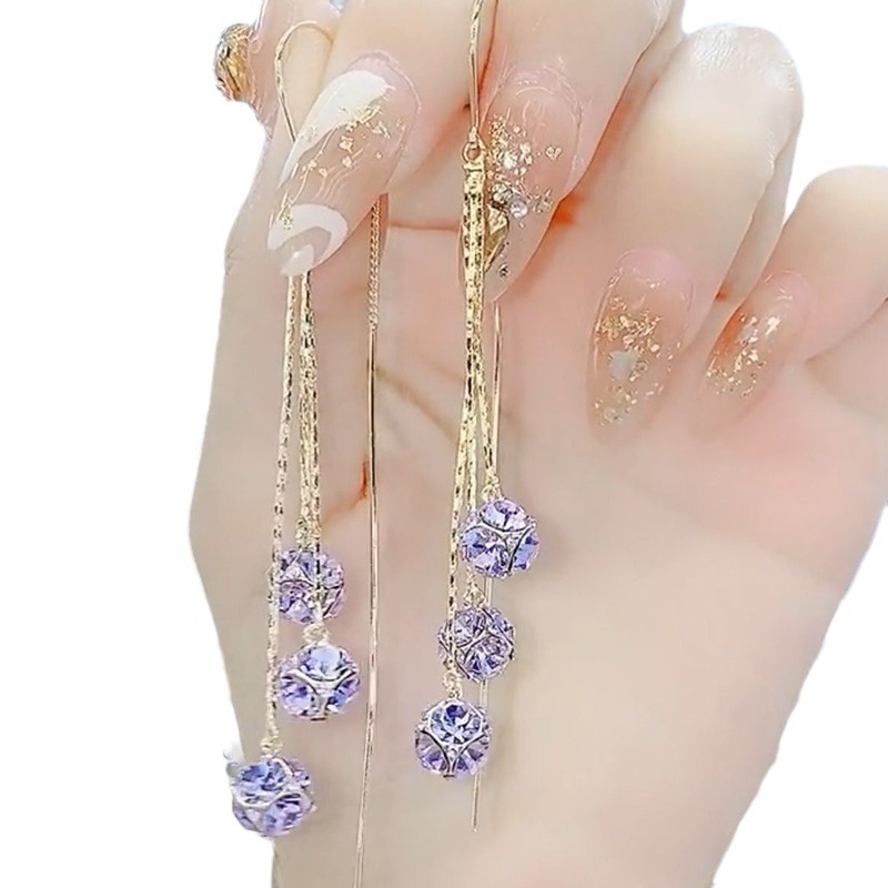 紫色长款流苏耳线女年新款潮韩版网红时尚气质耳环百搭耳饰