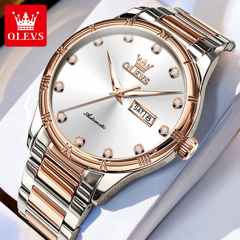 欧利时品牌全自动机械情侣表镶钻罗马刻度简约夜光男士手表男表潮