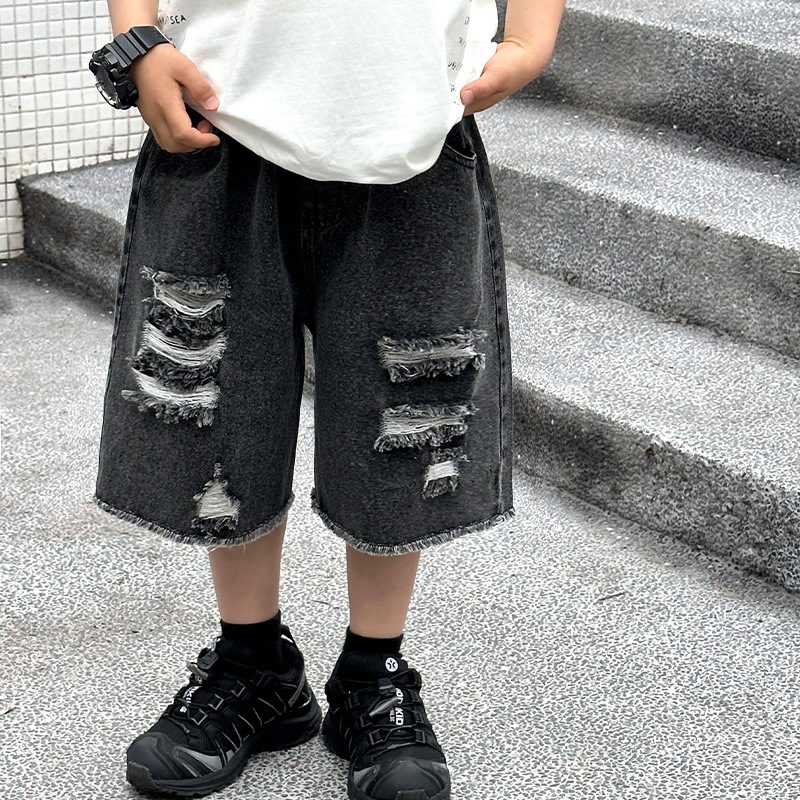 儿童牛仔短裤男童裤子宝宝宽松破洞裤夏季新款男孩透气直筒裤