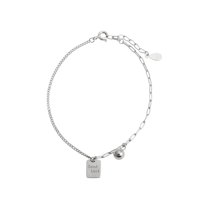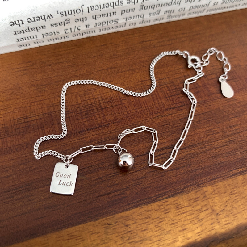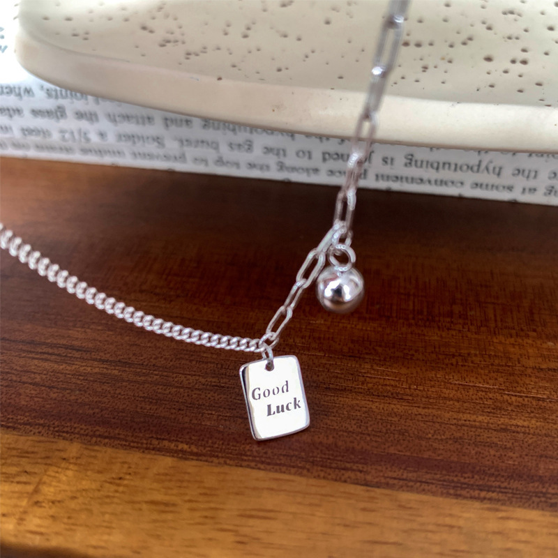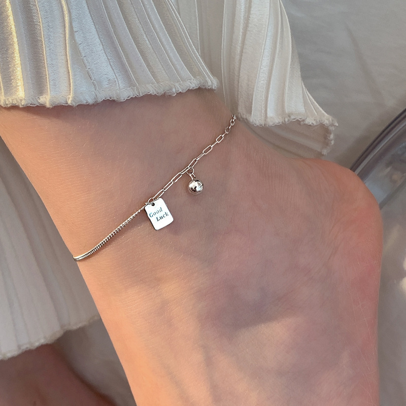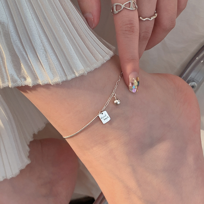 韩一幸运脚链女s925纯银脚链ins网红字母方牌吊坠小铃铛足链