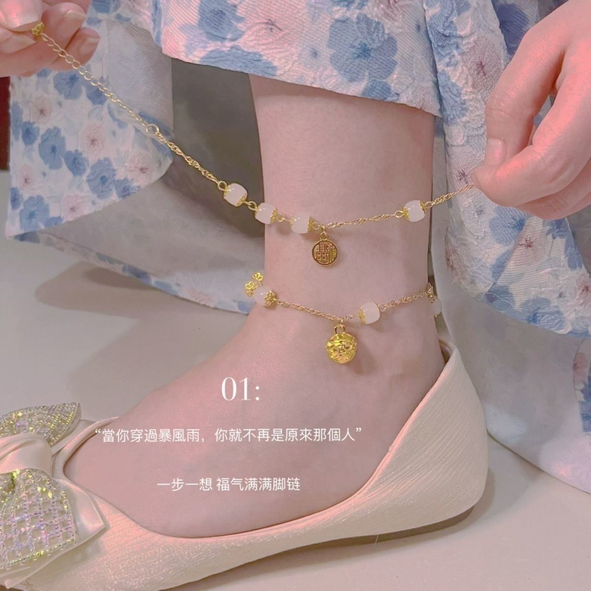 流苏和田钰脚链夏天女生小众设计灵动新款复古脚环气质百搭女