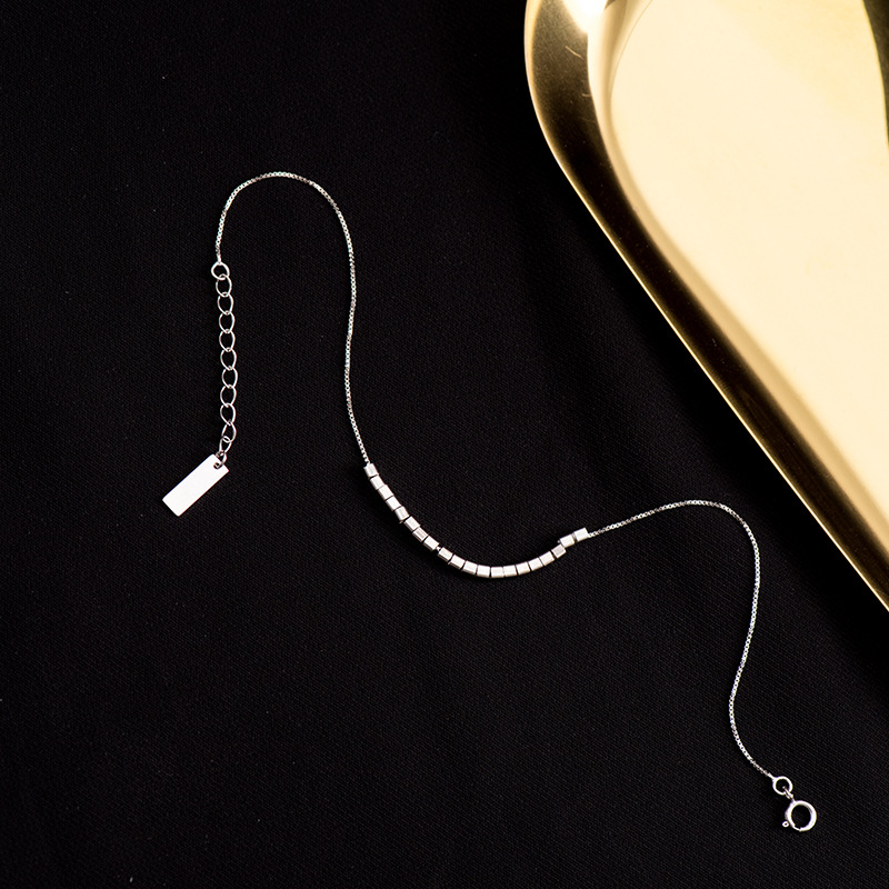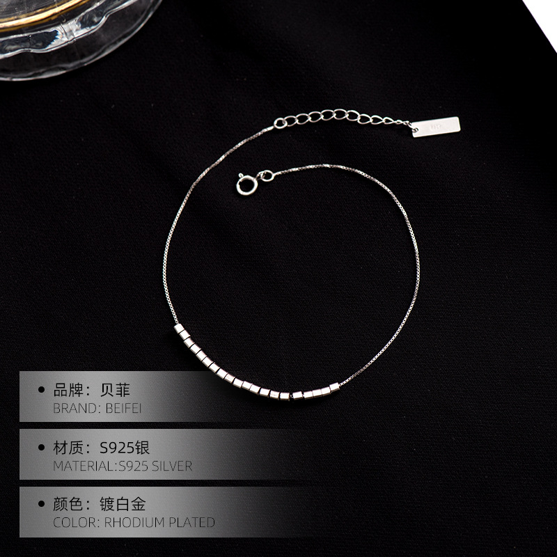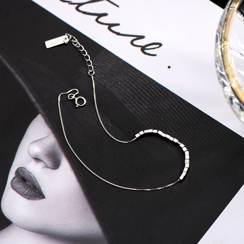S925纯银高级感小方块脚链女夏新款潮轻奢小众ins冷淡风脚饰