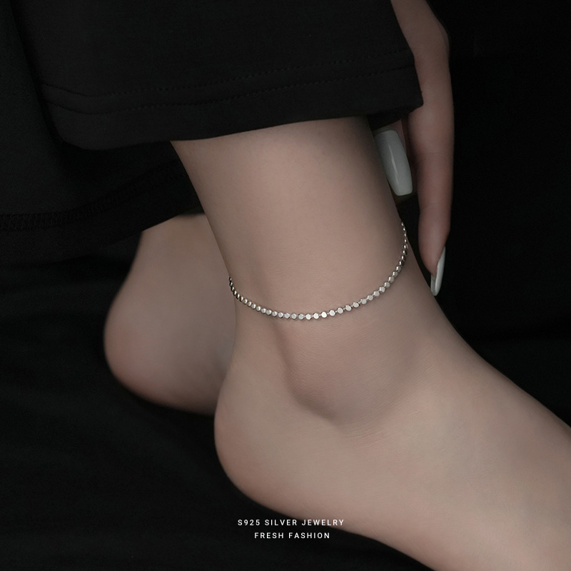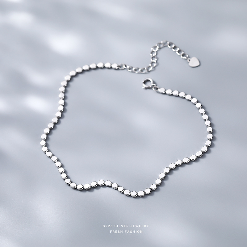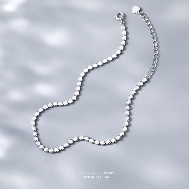 云小舒 s925银日系冷淡风圆珠脚链复古简约光珠豆豆韩版脚饰