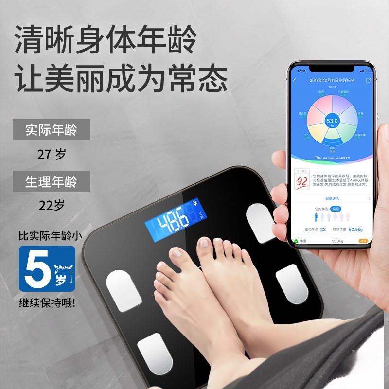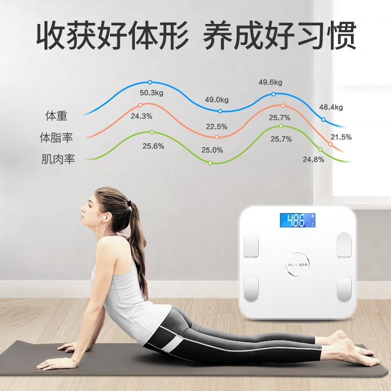 奥克斯家用成人电子秤体重秤蓝牙脂肪秤APP体脂秤智能充电人体秤