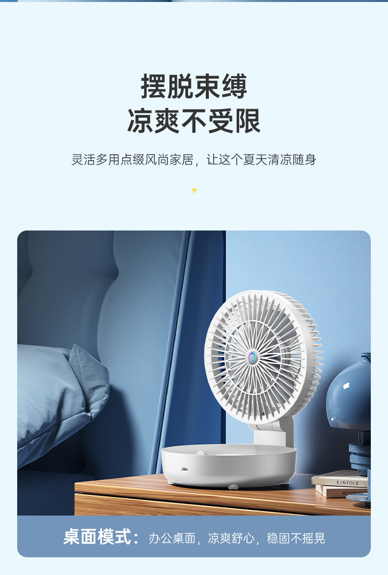 USB多功能折叠循环扇台式壁挂两用厨房浴室办公室便捷电风扇