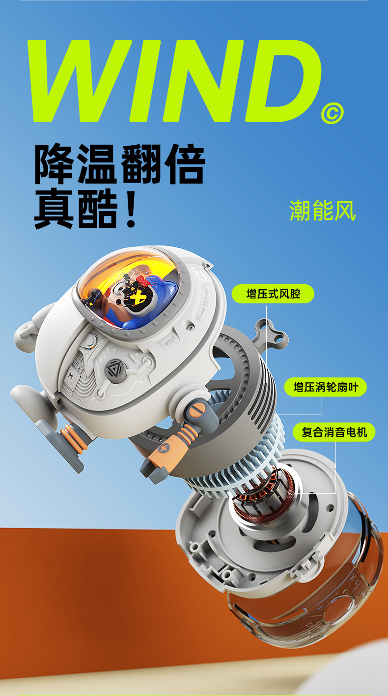 挂脖风扇 机甲儿童多功能USB风扇无叶迷你手持风扇桌面充电小风扇