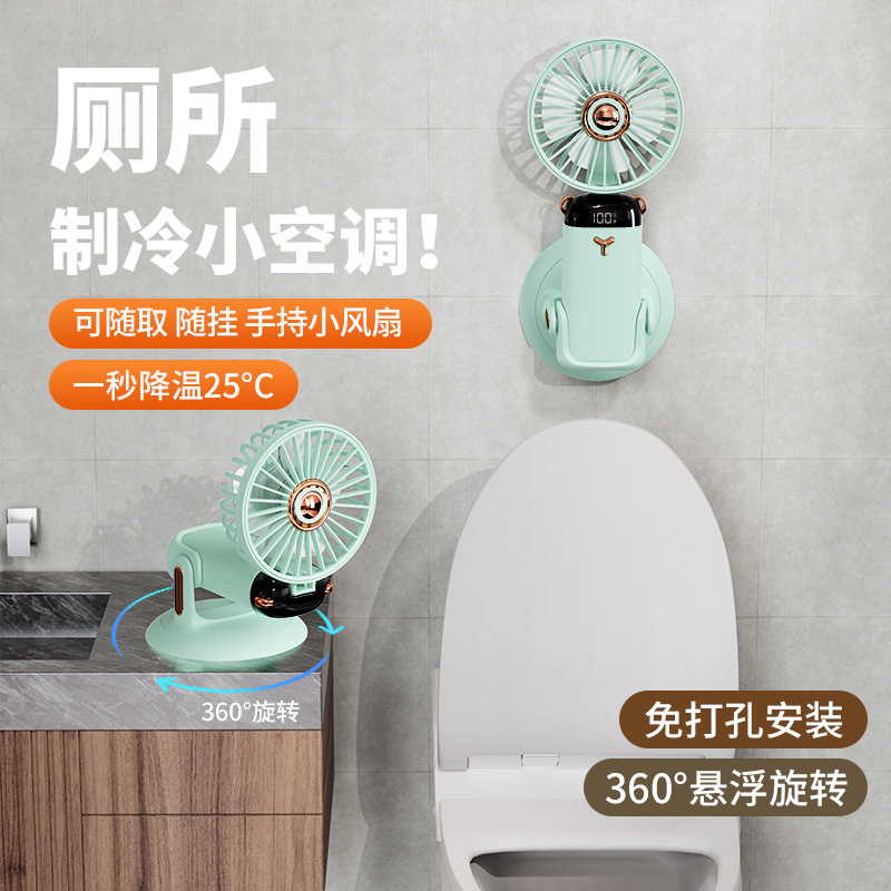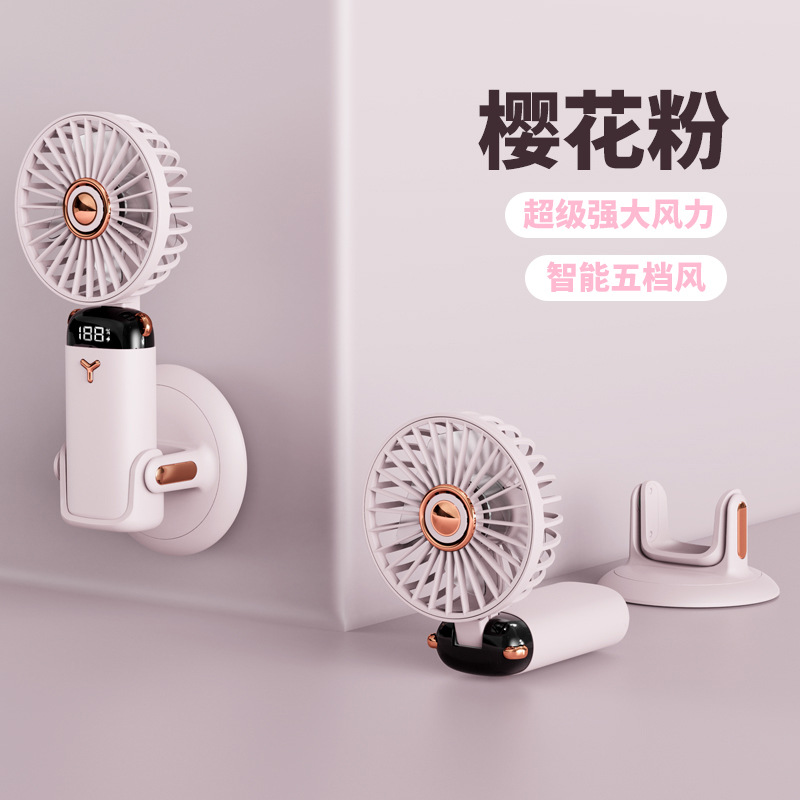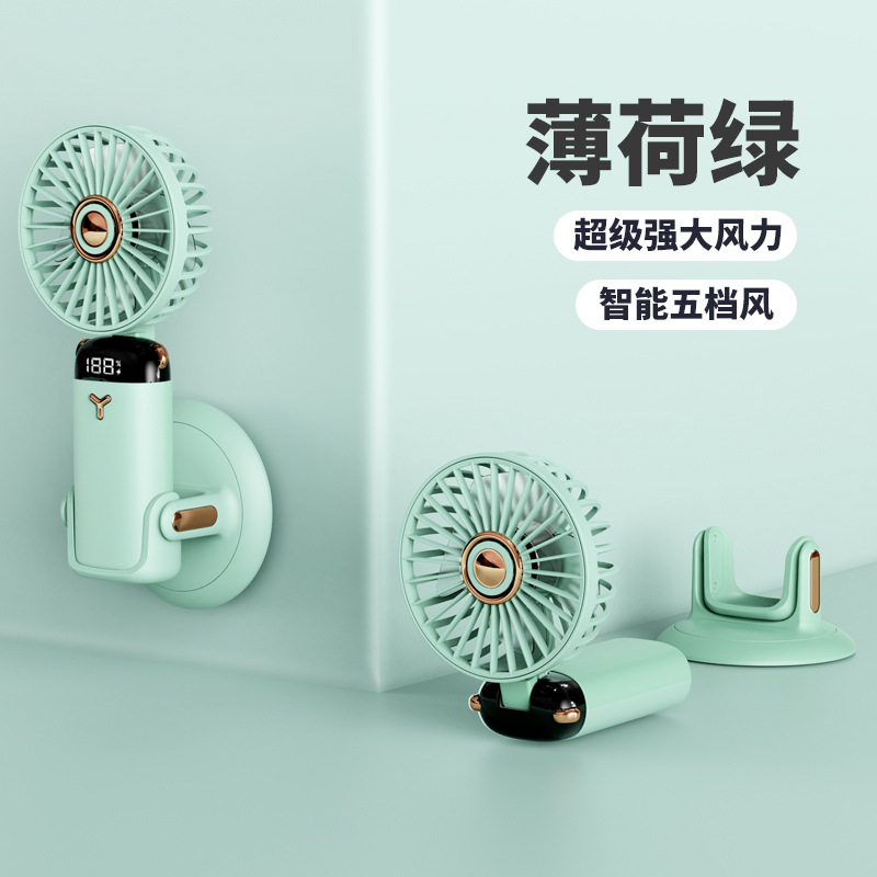 折叠手持风扇可立挂折叠收纳带数显便携静音迷你风扇