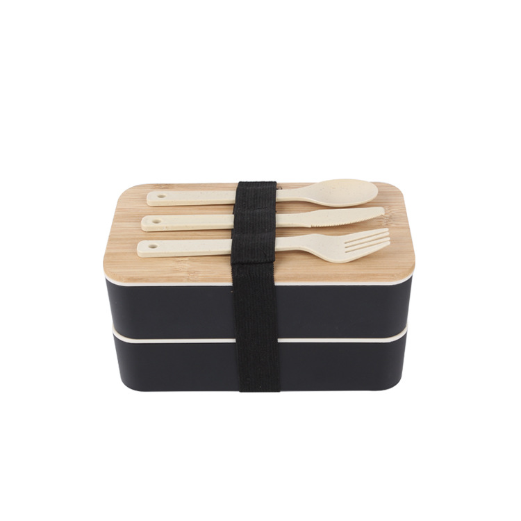 双层竹盖饭盒-黑色