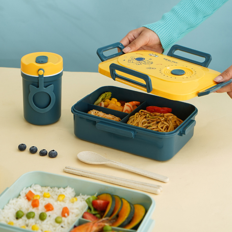 可加热塑料饭盒学生便当盒长方形分格卡通饭盒密封午餐盒便携式