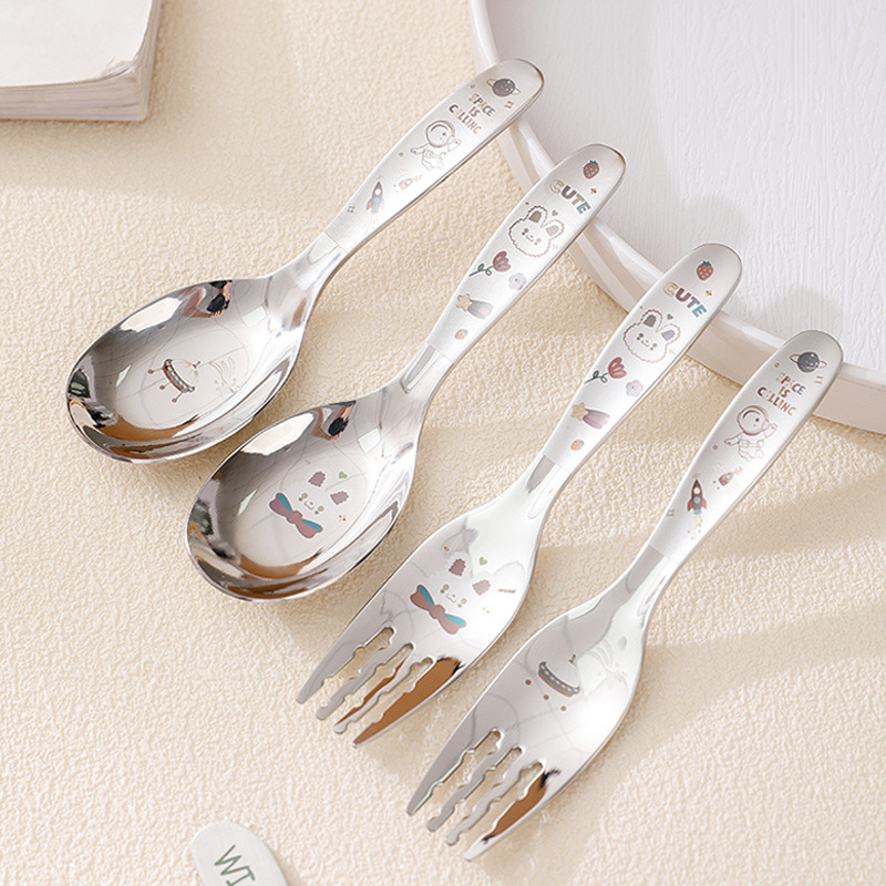 食品级316不锈钢勺叉餐具 宝宝儿童家用吃饭小勺叉子水果叉小汤勺