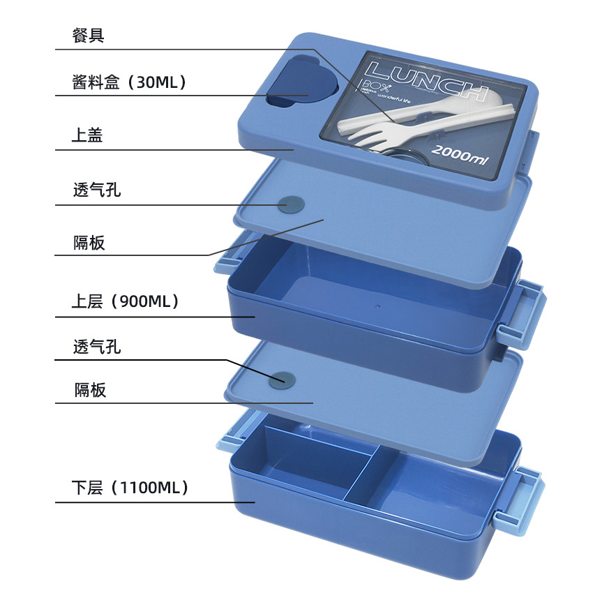 双层塑料饭盒上班族 便当盒高颜值日式微波炉饭盒 学生便携午餐盒