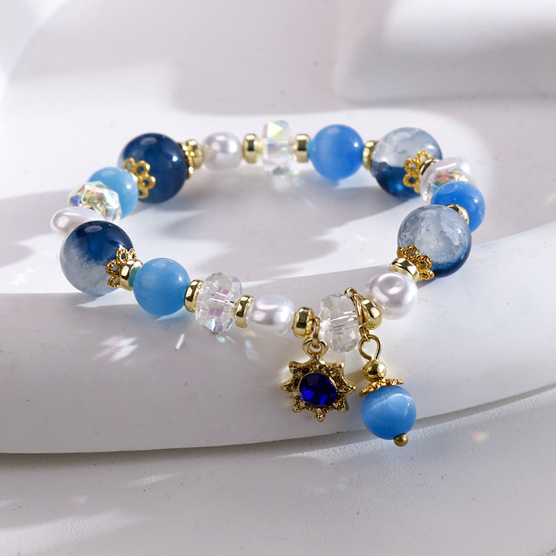 原创设计春夏闪亮水晶渐变爆冰珠猫眼石手链小众少女百搭手串