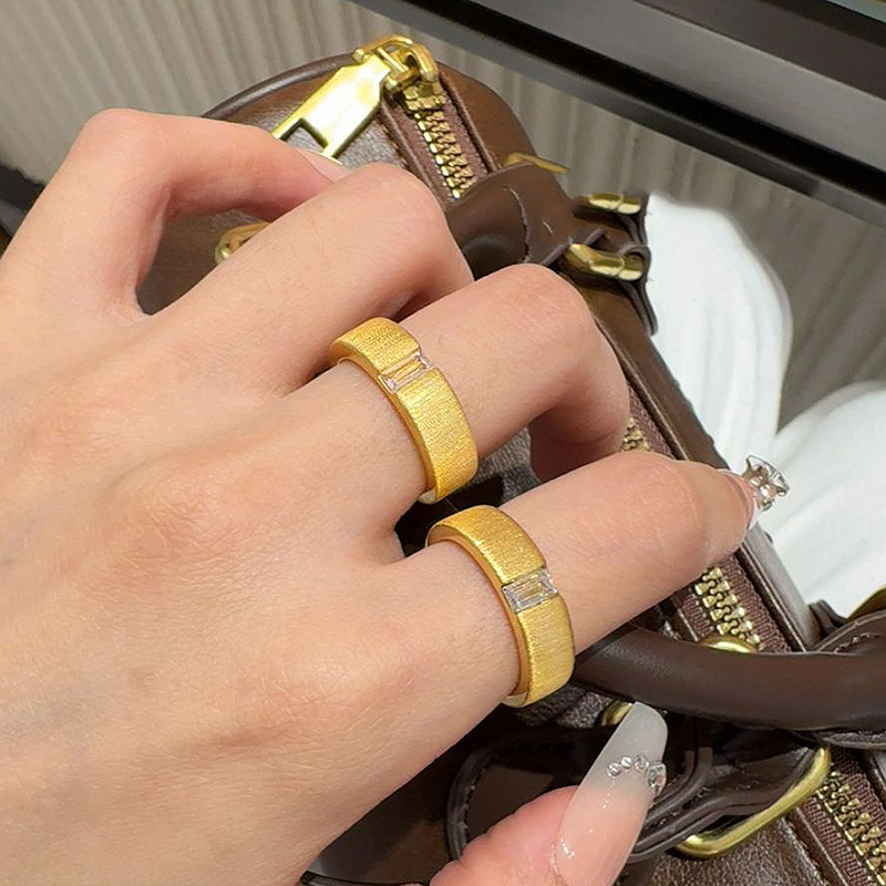 小红书爆款拉丝方糖戒指2025新款古法金色丝绸缎带指环