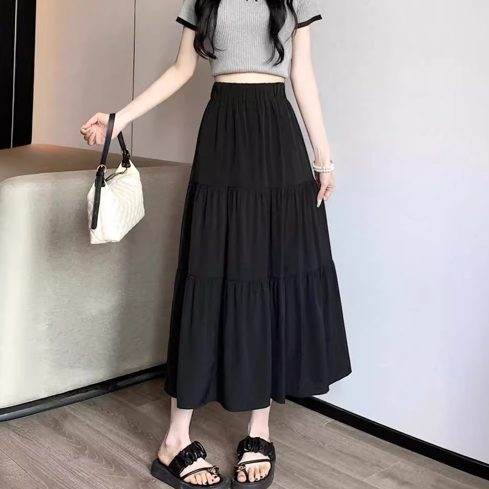 黑色高腰百褶半身裙女装春季遮胯小众高级感气质显瘦半裙a字