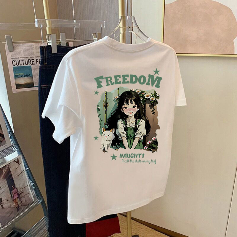 2025夏季新款设计感印花正肩纯棉短袖t恤女宽松百搭质感半袖上衣