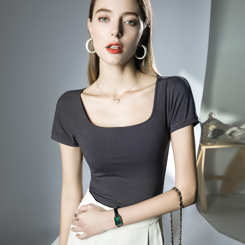 夏季新款短袖方领T恤洋气