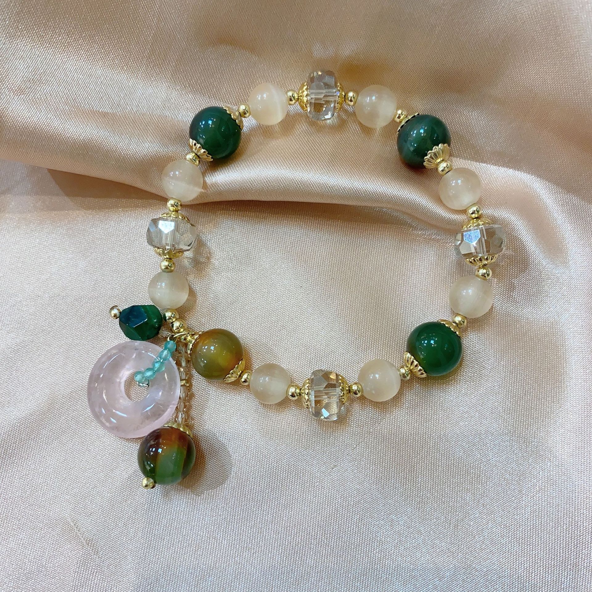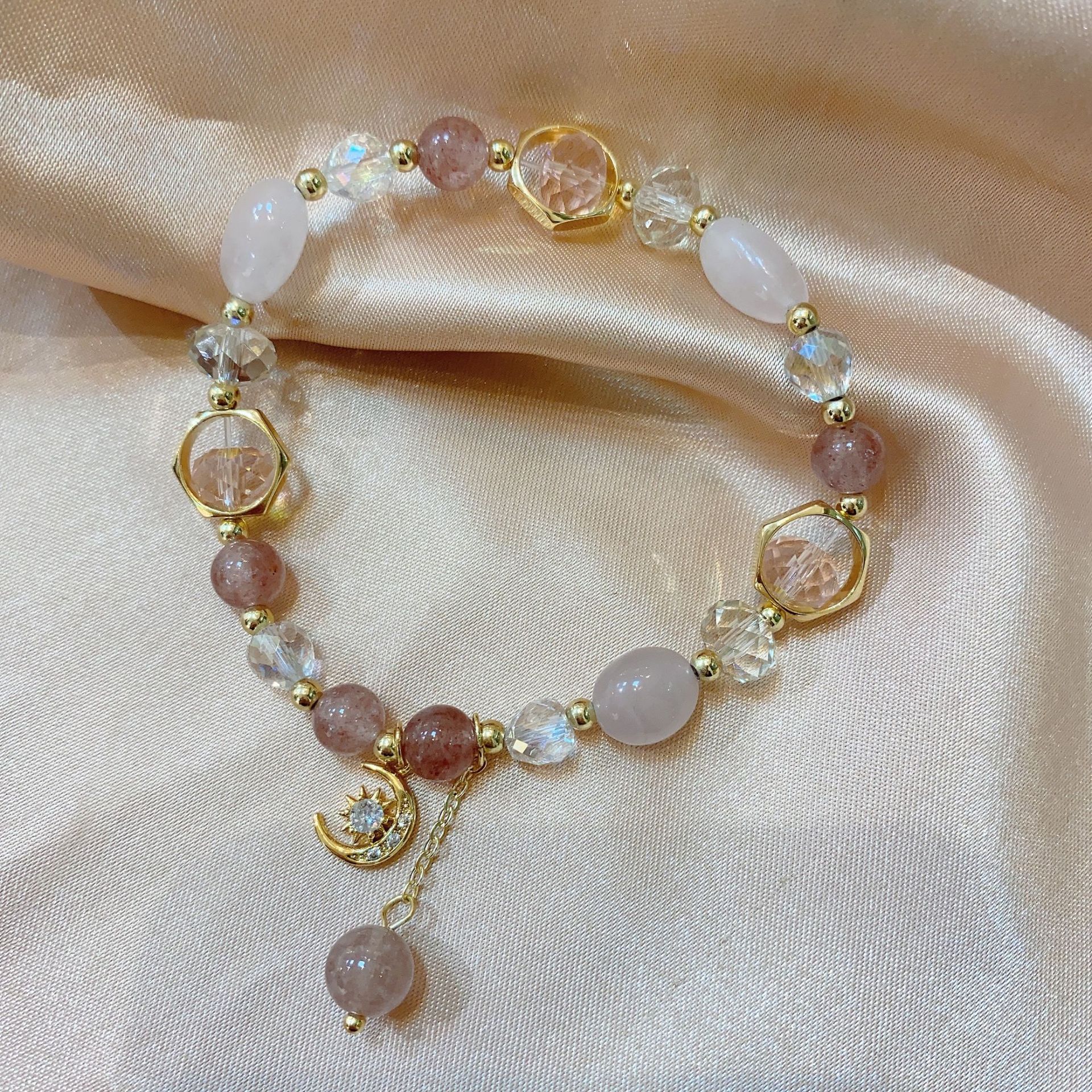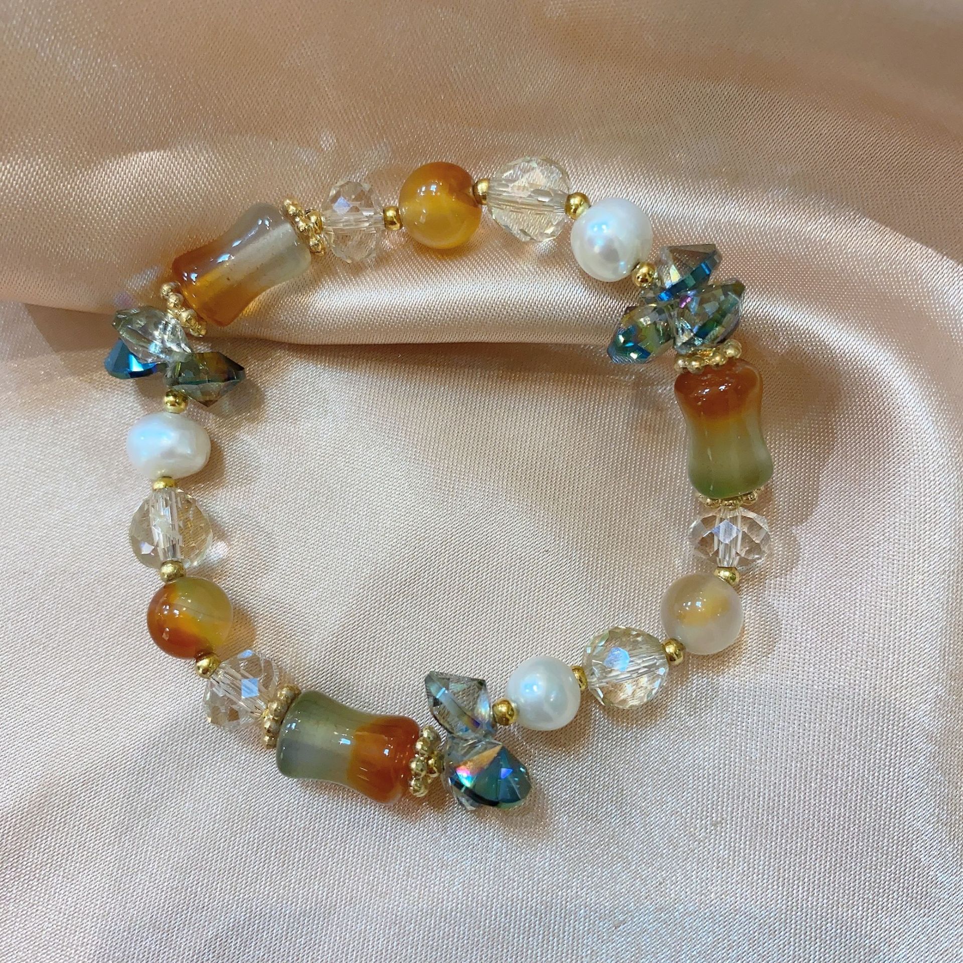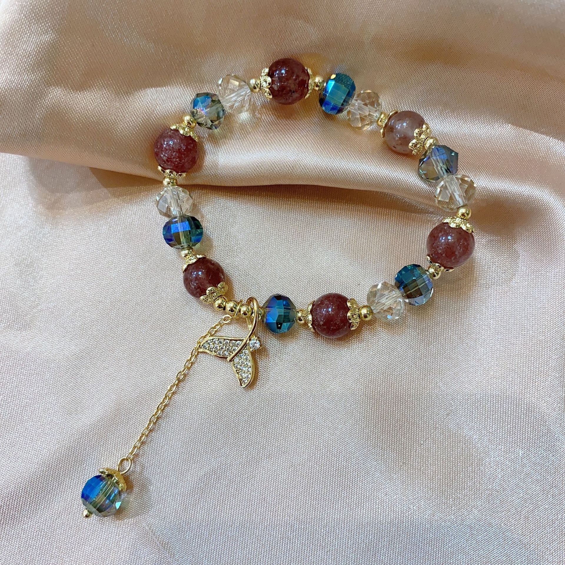 鱼尾手链水晶冷淡风串珠手饰品小众设计感手镯手环女真金电镀几何