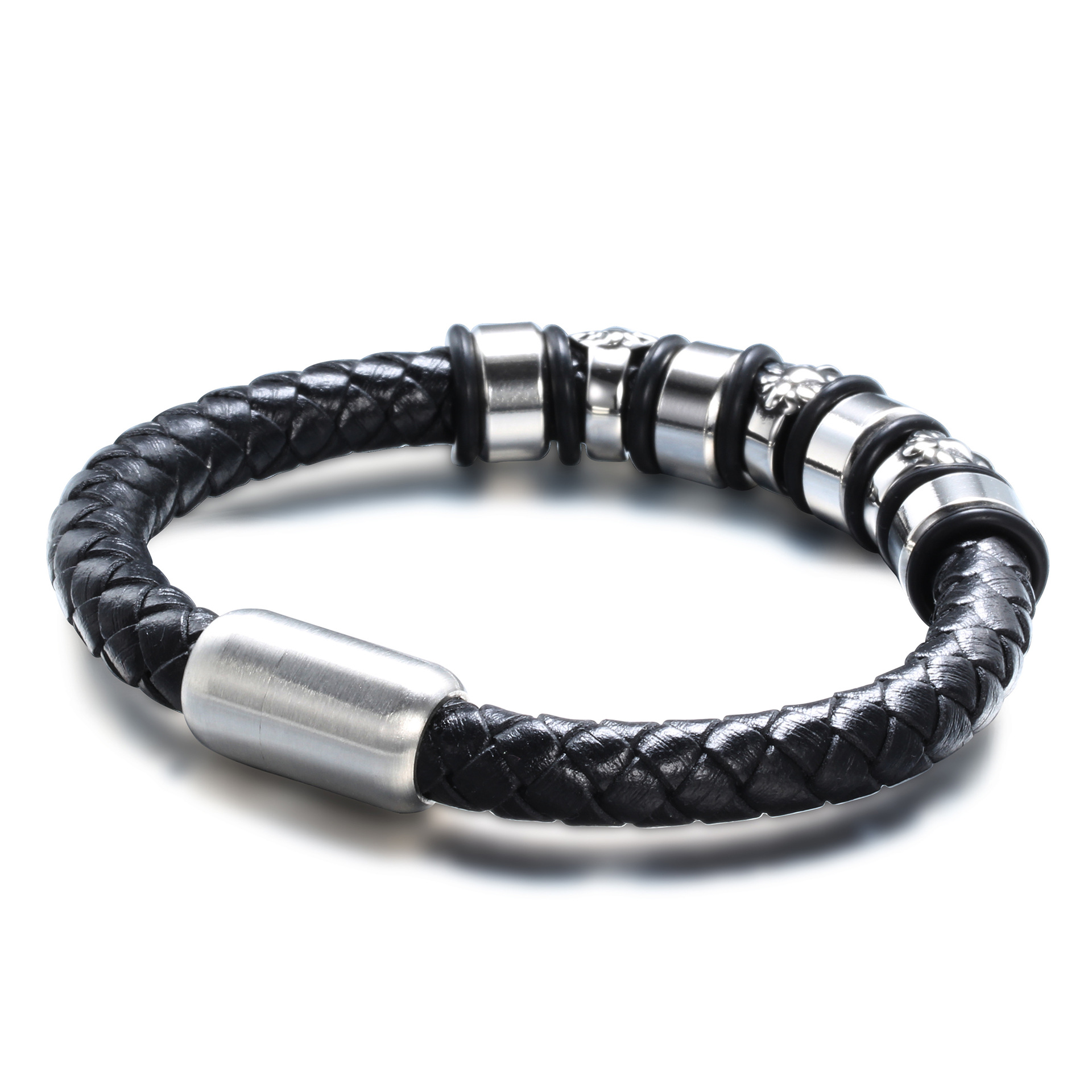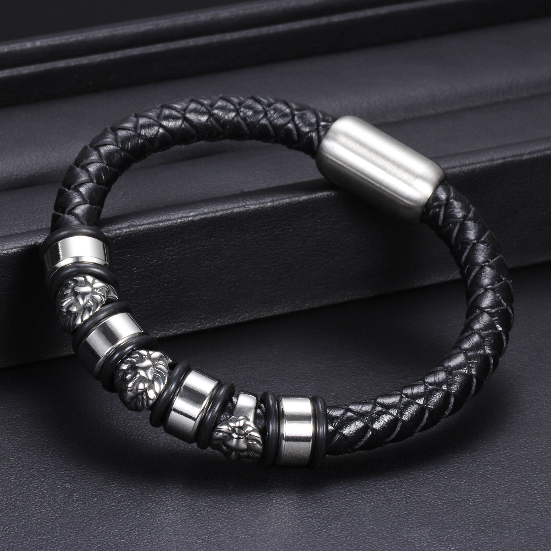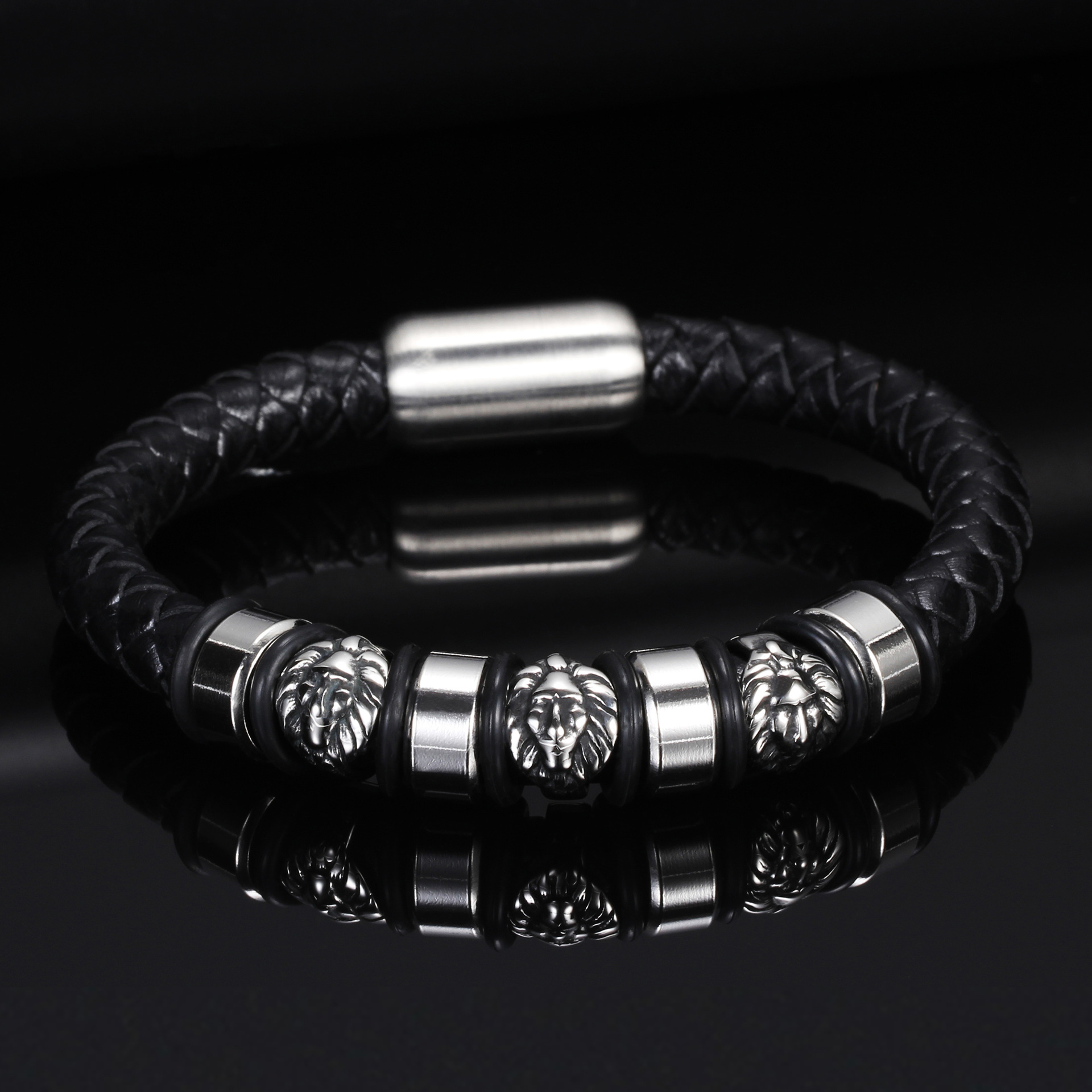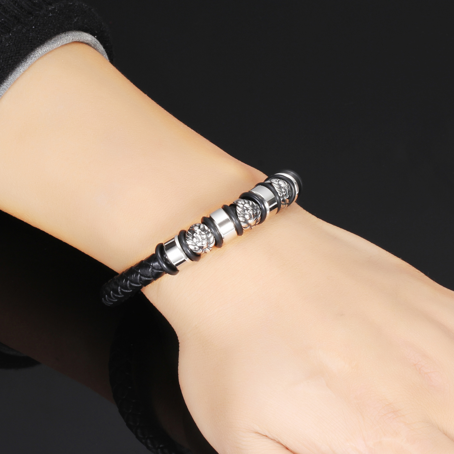 欧美9MM复古朋克风手链狮子头皮革编制手链个性简约情侣手链