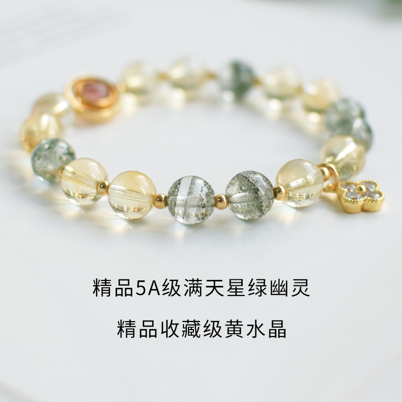 天然黄水晶绿幽灵手链女ins小众设计手串闺蜜礼物