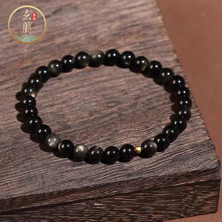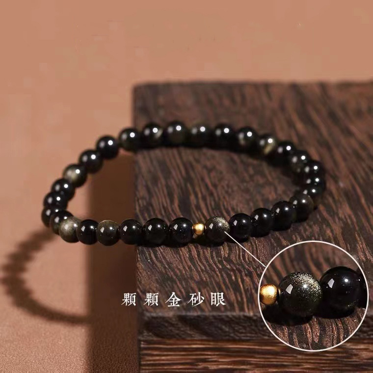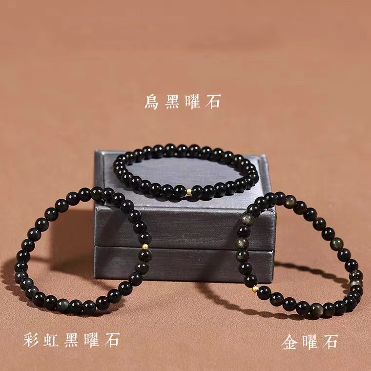 天然黑曜石转运珠手链女款金曜石佛珠手串本命年男女新年礼物
