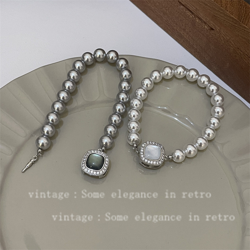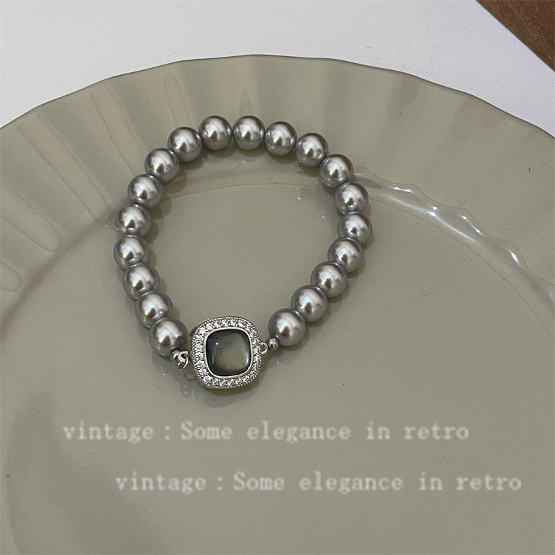 设计感真多麻色珍珠锆石手链女气质百搭高级感小众精致复古手串