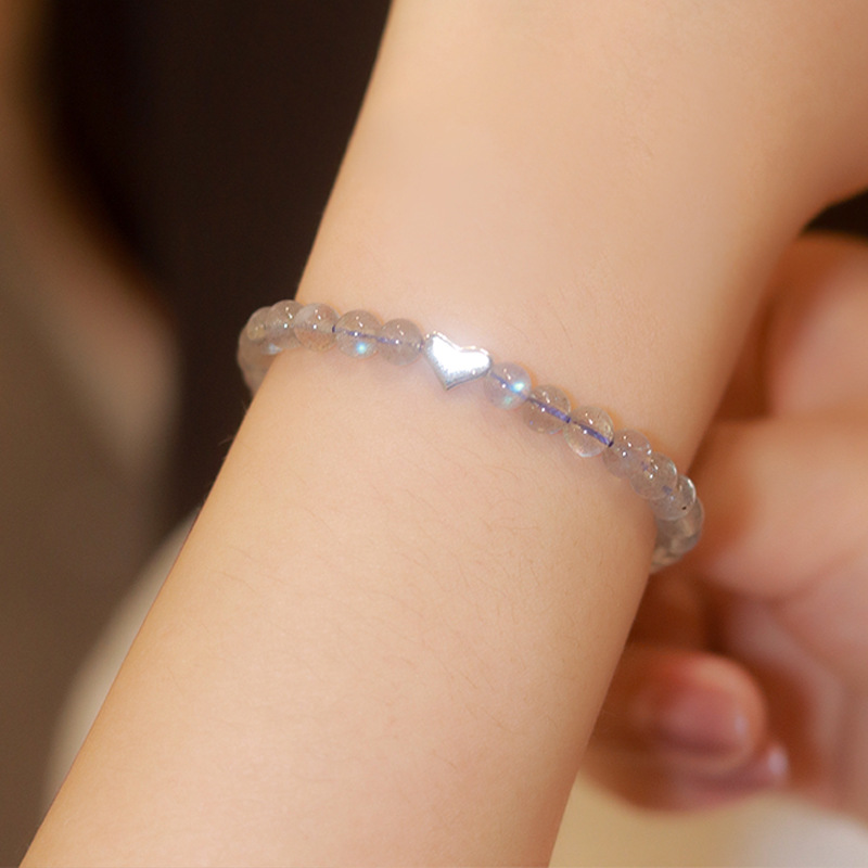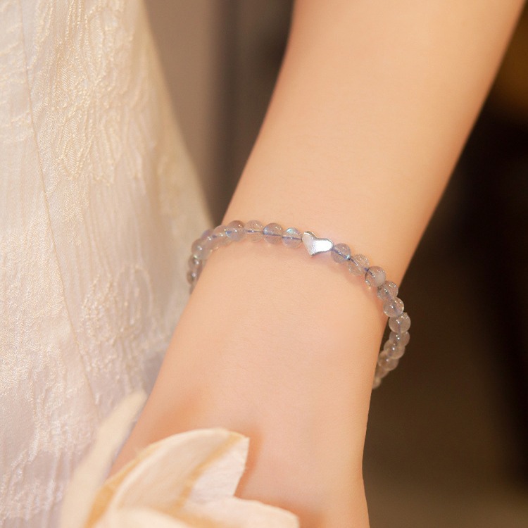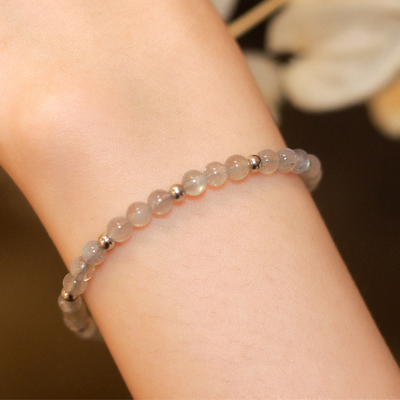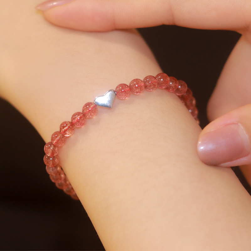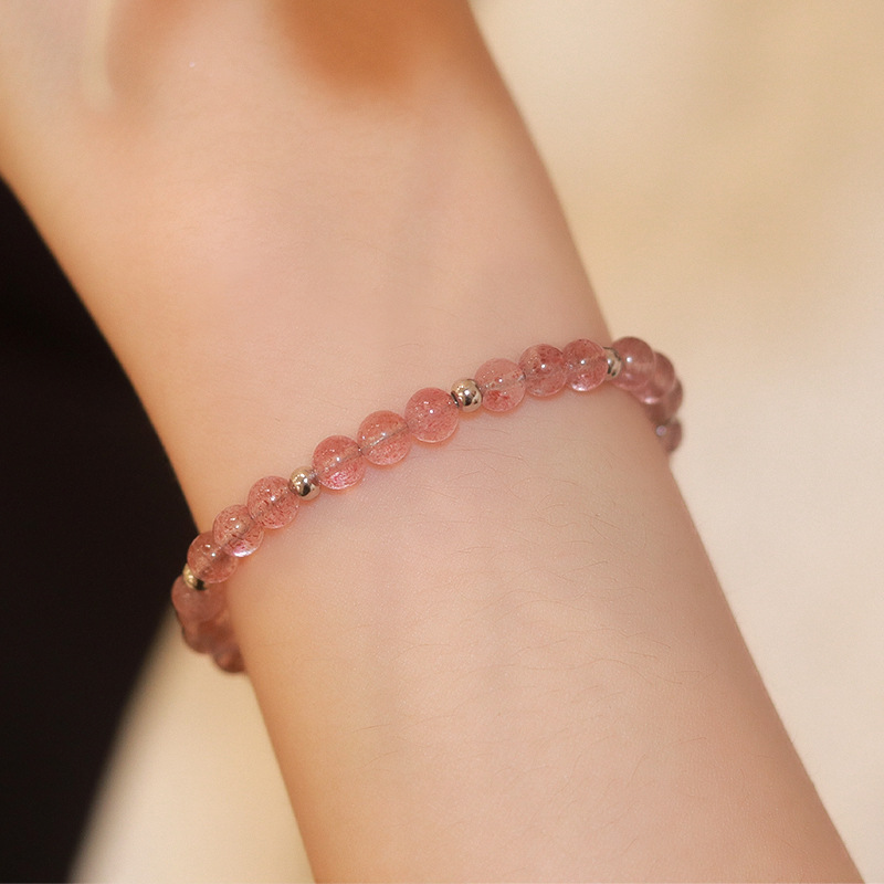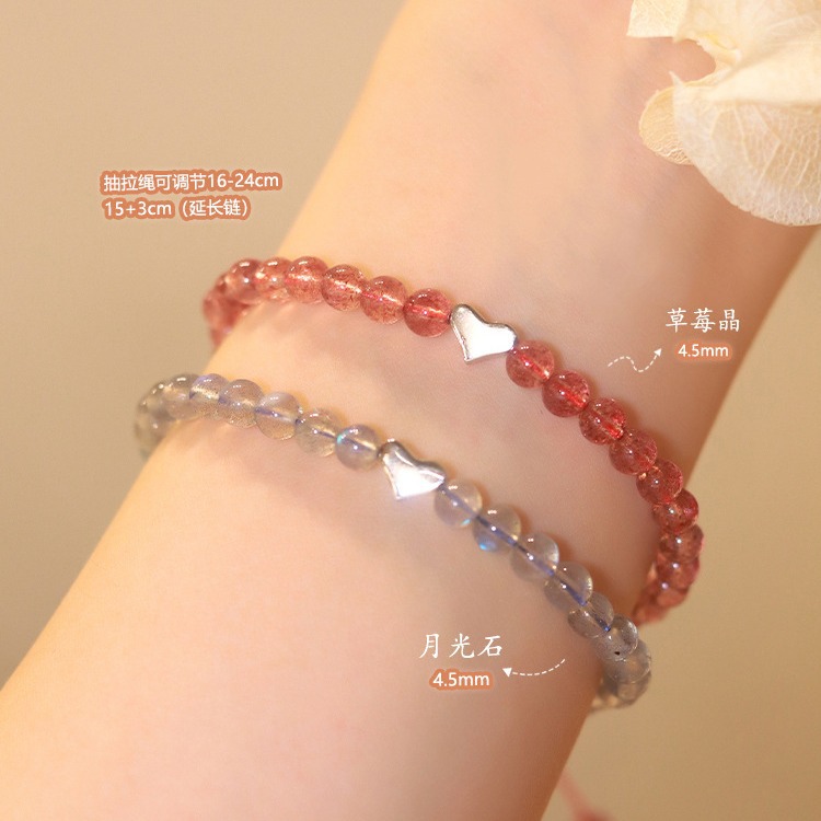 典润 相思局灵光水晶天然玛瑙草莓晶月光石手链女ins纯银单圈森系