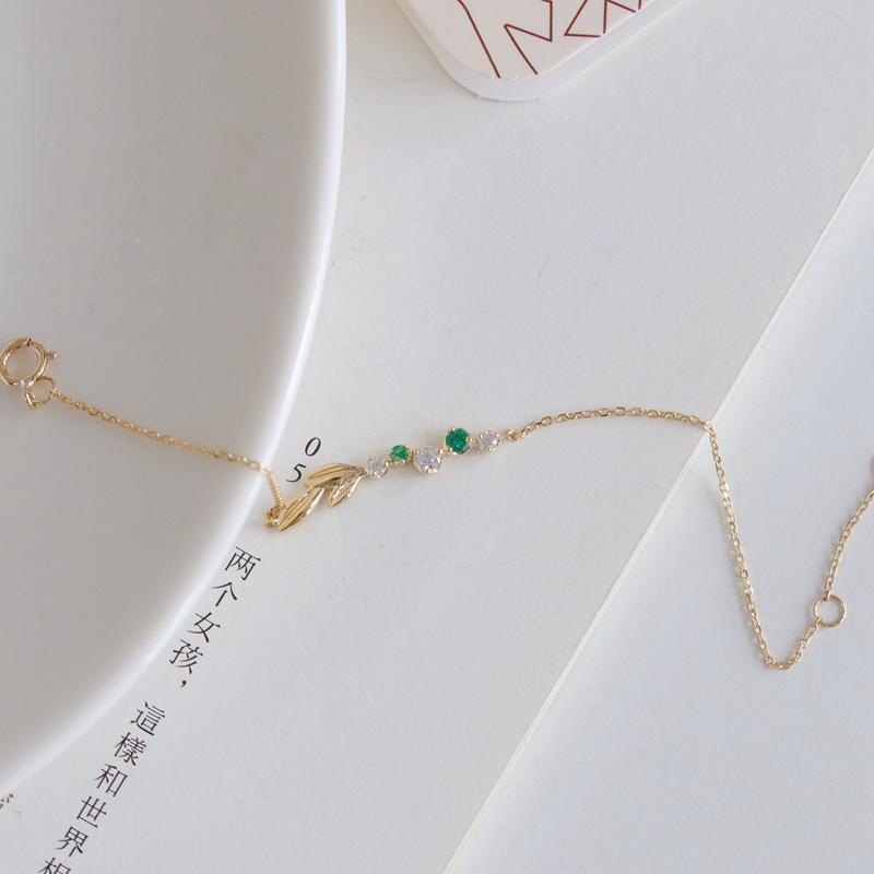 万物可爱镶嵌祖母绿锆石细小手链女ins日系高级轻奢春夏叠戴彩宝