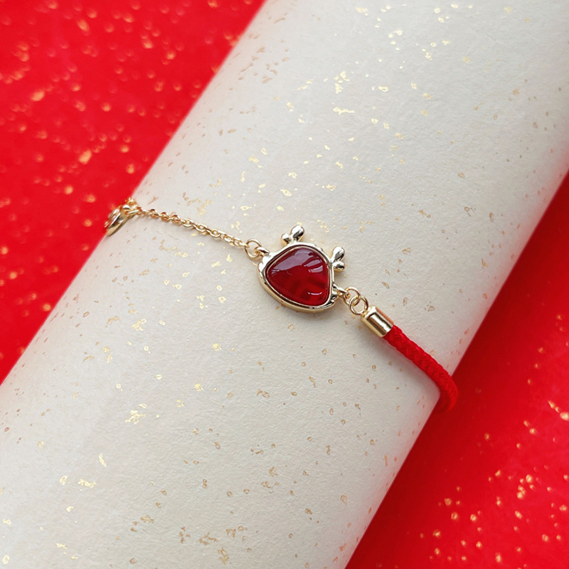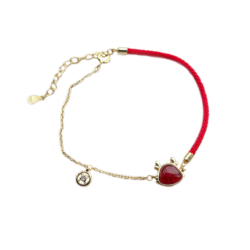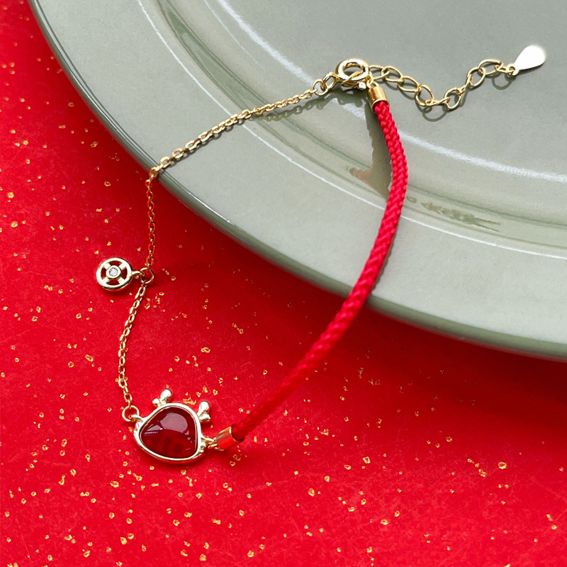 S925纯银龙年本命年红绳手链女轻奢小众红玛瑙生肖龙手绳新年礼物