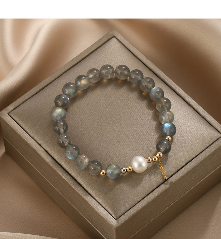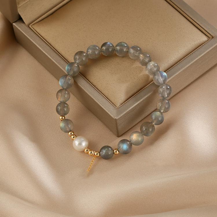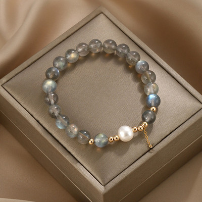 天然淡水珍珠月光石手链女轻奢水晶串珠手串小众高级感14K金手饰