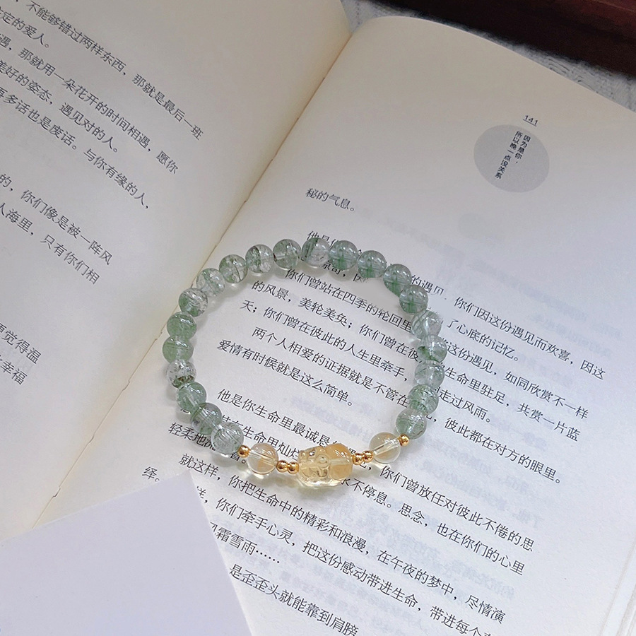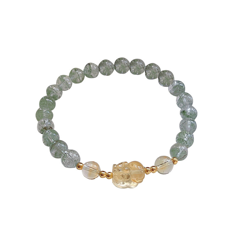 天然黄水晶貔貅绿幽灵手链女珠手串黄水晶貔貅小众设计简约ins水