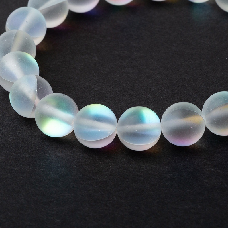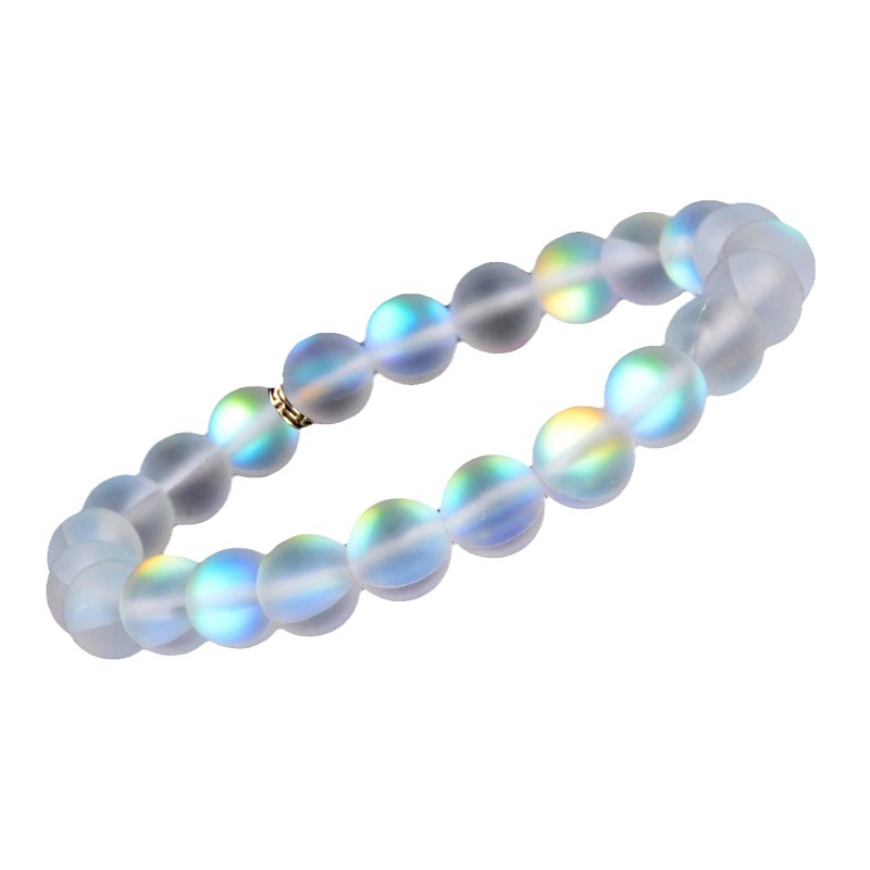 速卖通款彩色闪光石七彩水晶手链仿月光石磨砂光面白色玻璃手串