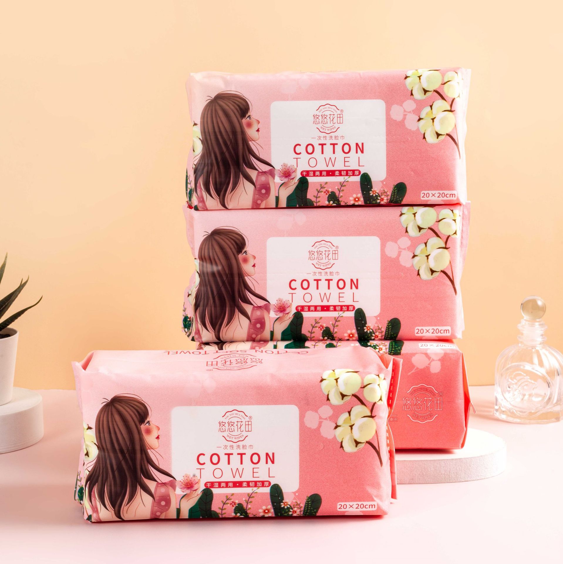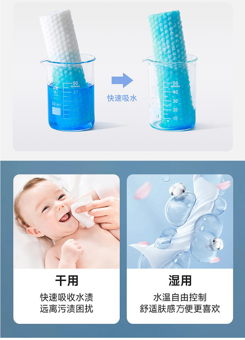 加厚珍珠纹纯棉婴儿洗脸巾一次性洁面巾干湿两用美妆抽取式棉柔巾