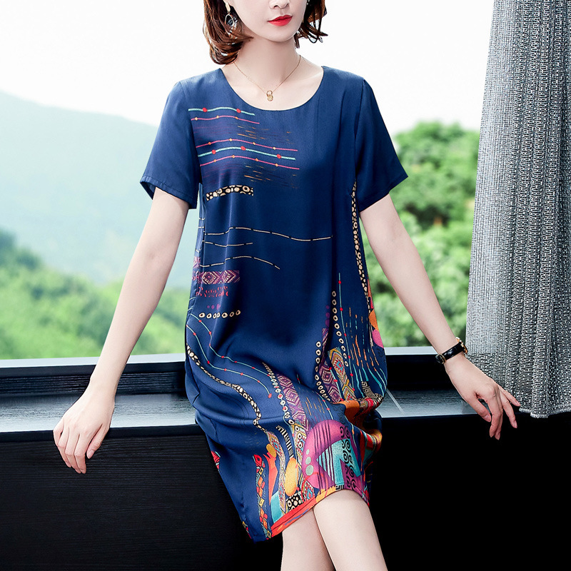 美丽胖妈妈装宽松大码夏季新款重磅冰丝清凉连衣裙贵夫人女潮