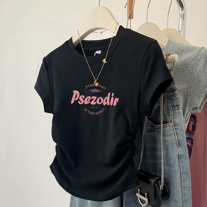 纯棉美式黑色修身显瘦正肩短袖T恤女夏季新款爆款短款上衣服
