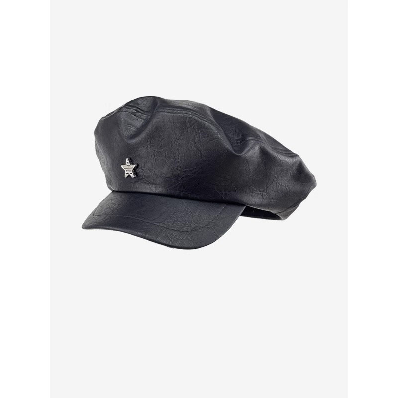 黑色复古高级感贝雷帽y2k小众设计皮帽子女大头围显脸小八角帽潮