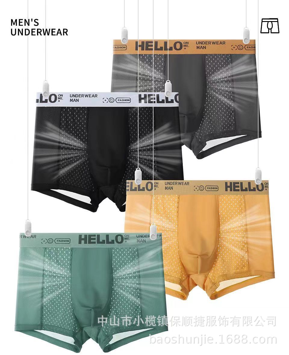 时尚网孔透气冰丝男士平角裤冰爽夏季速干裤衩男热天凉爽裤头男