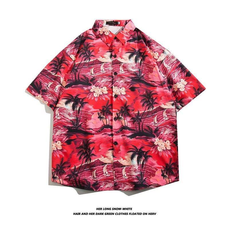 cec超火夏威夷沙滩衬衫短袖男夏季宽松港风潮ins海边沙滩度假衬衣