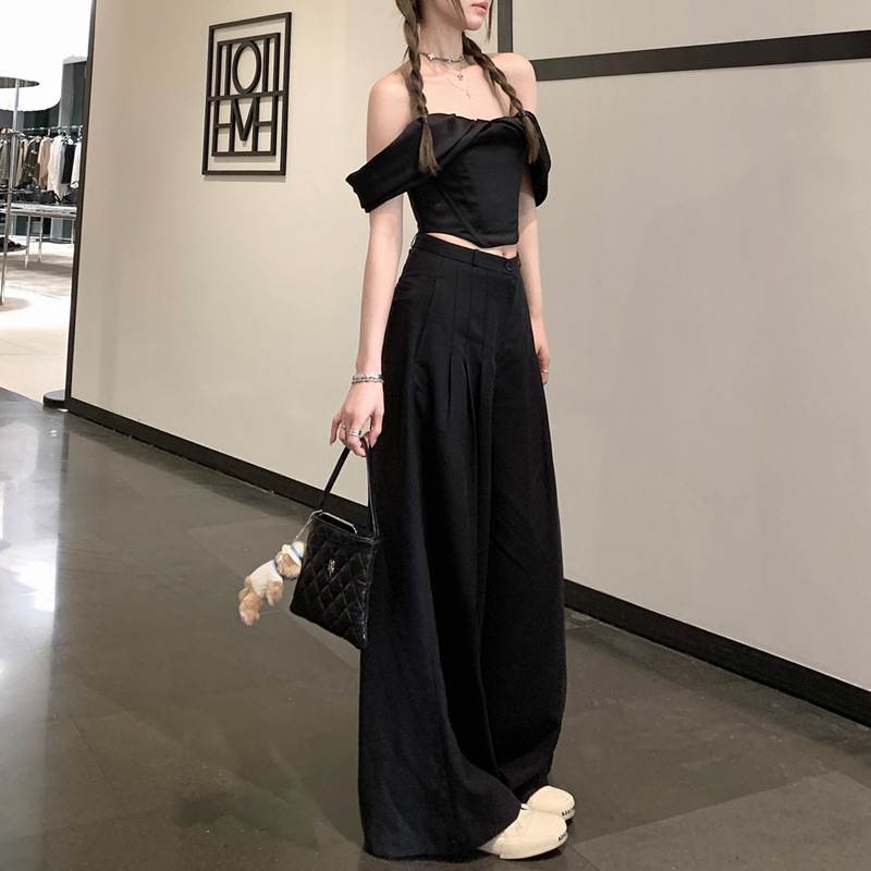 复古水洗做旧工字背心女夏季外穿短款修身褶皱吊带不规则辣妹上衣