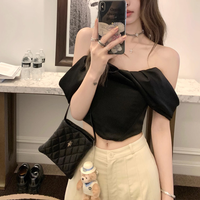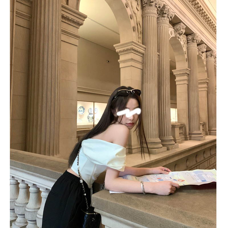MENGXIANG佛罗伦萨假日 法式重工鱼骨一字肩上衣女夏小众气质衬衫