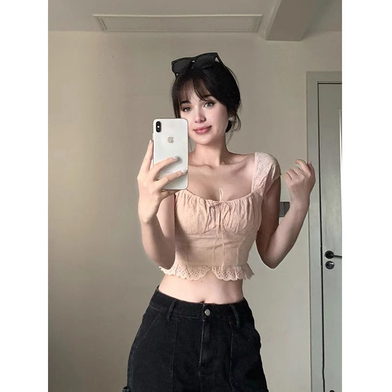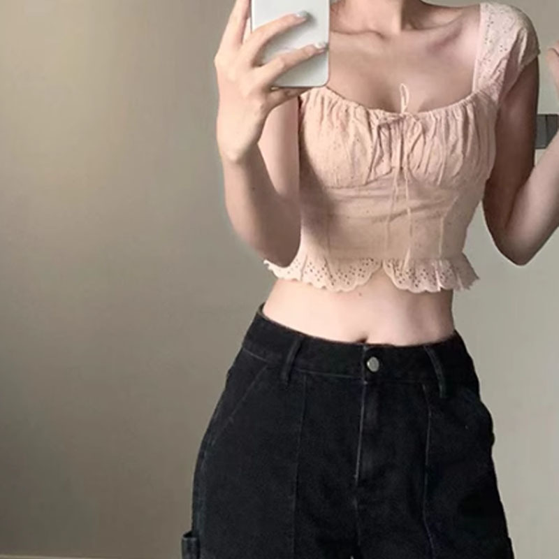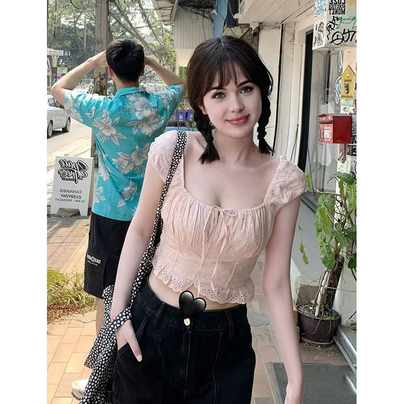 新款气质简约上衣方领短款衬衫女夏小众娃娃衫设计感甜美别致