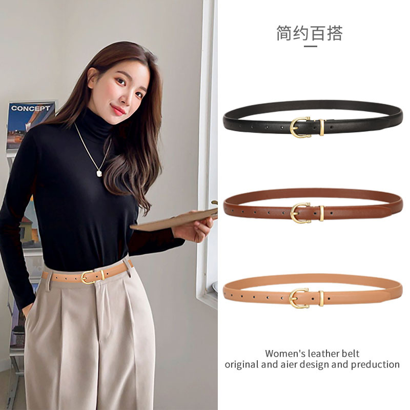 现货新款女士腰带针扣皮带女纯牛皮简约百搭牛仔西装裙裤带女