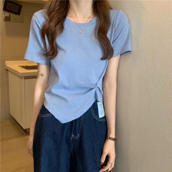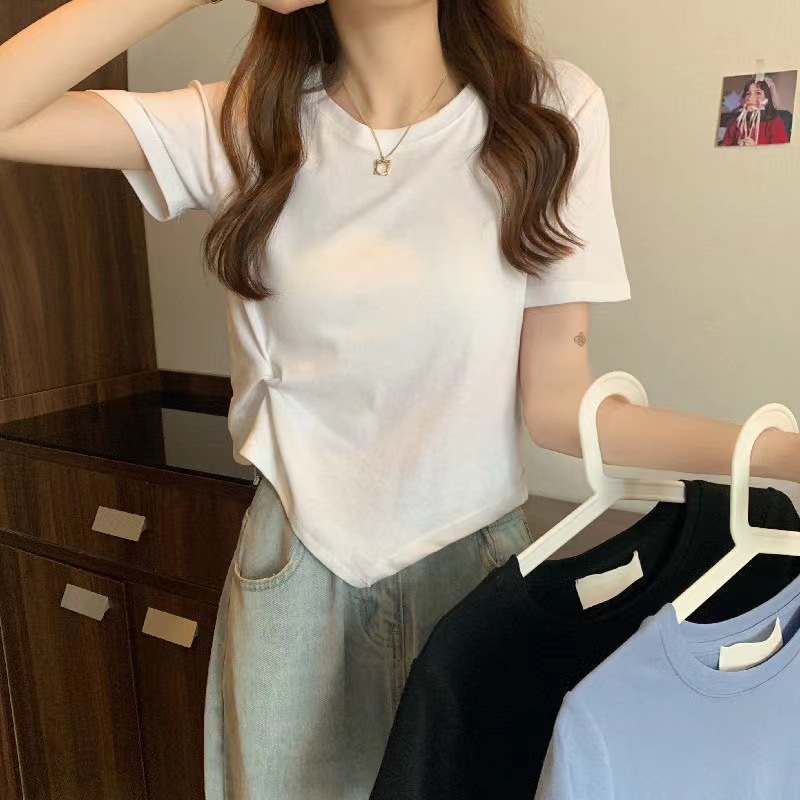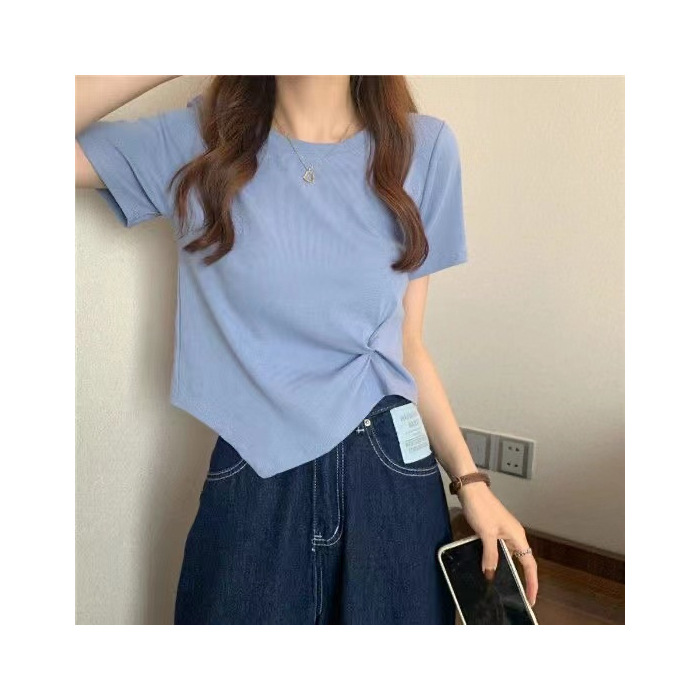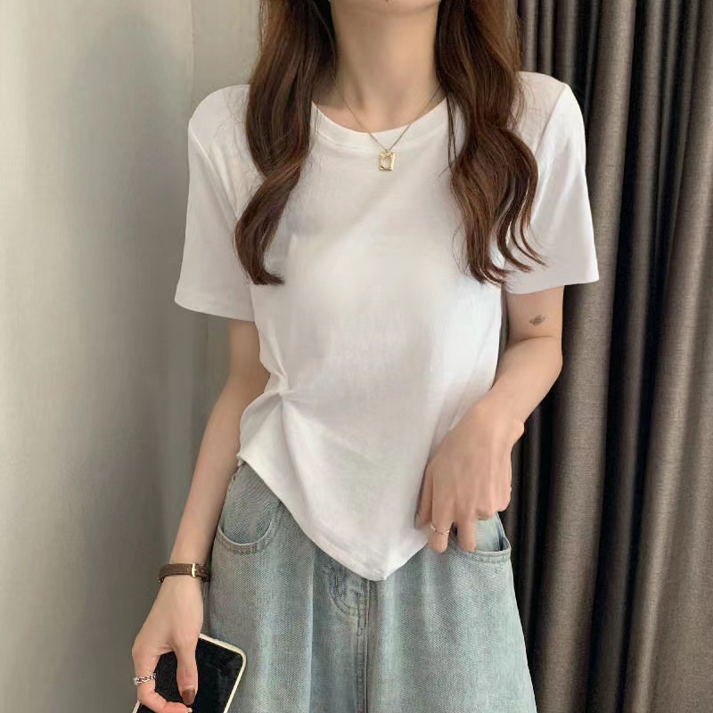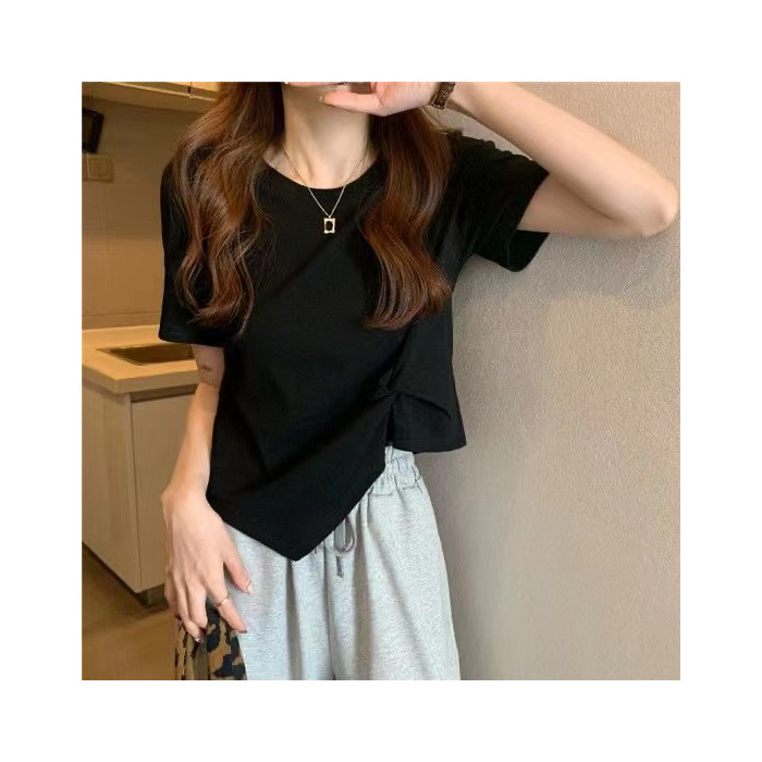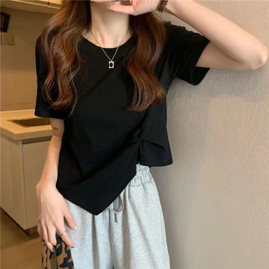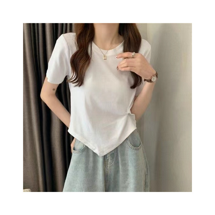 夏季新款不规则设计感白色短袖T恤女夏小众褶皱短款上衣ins潮
