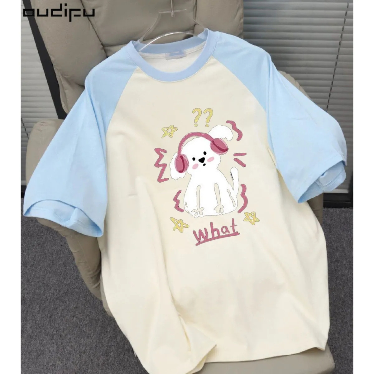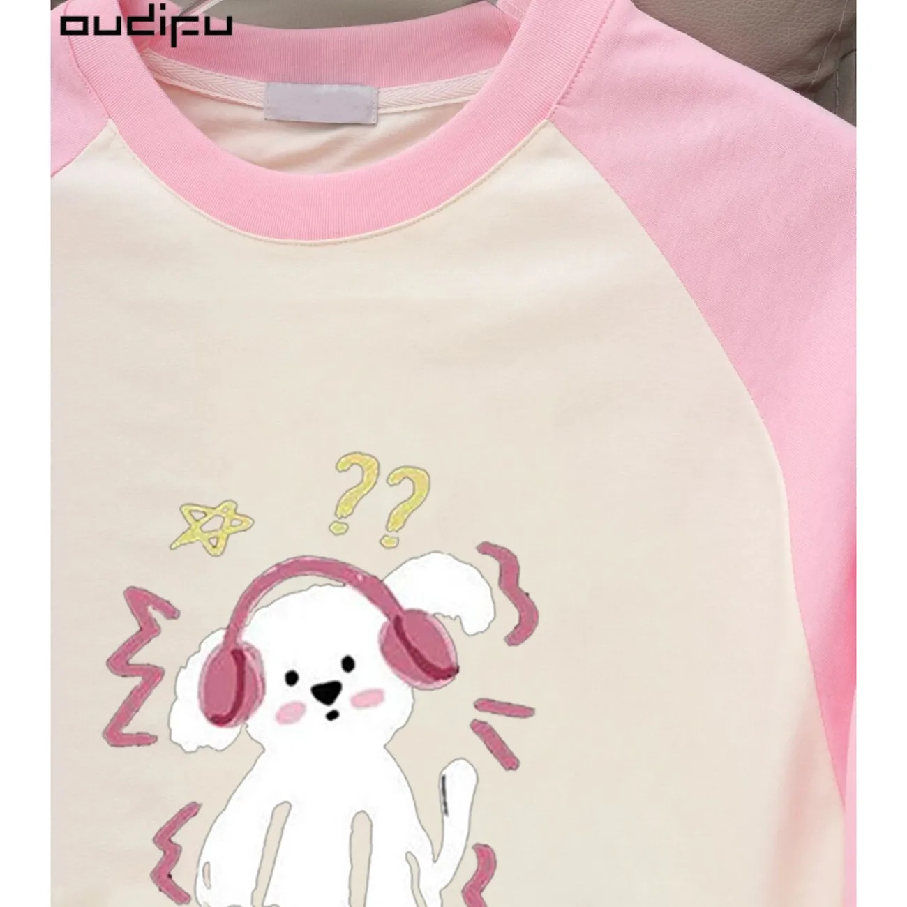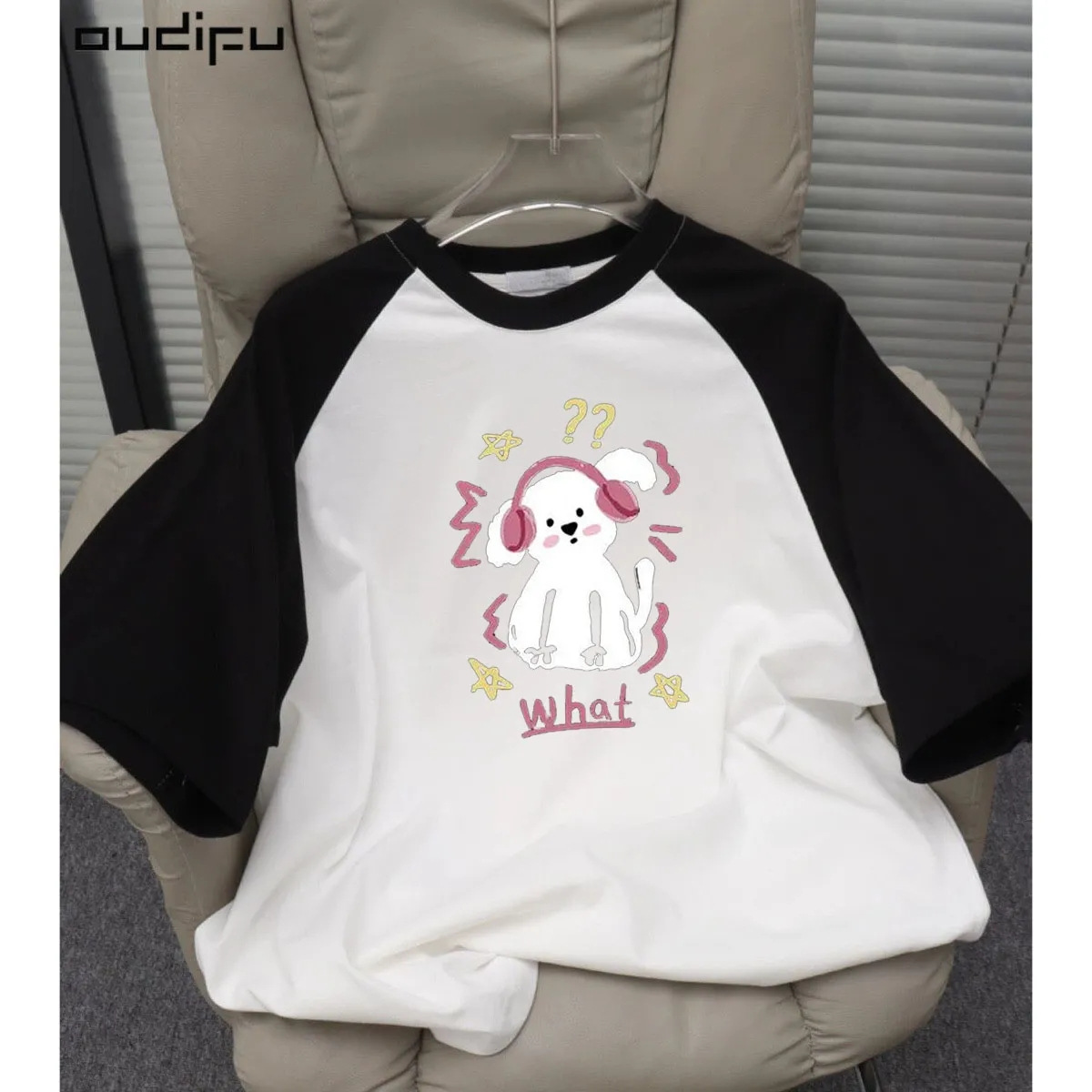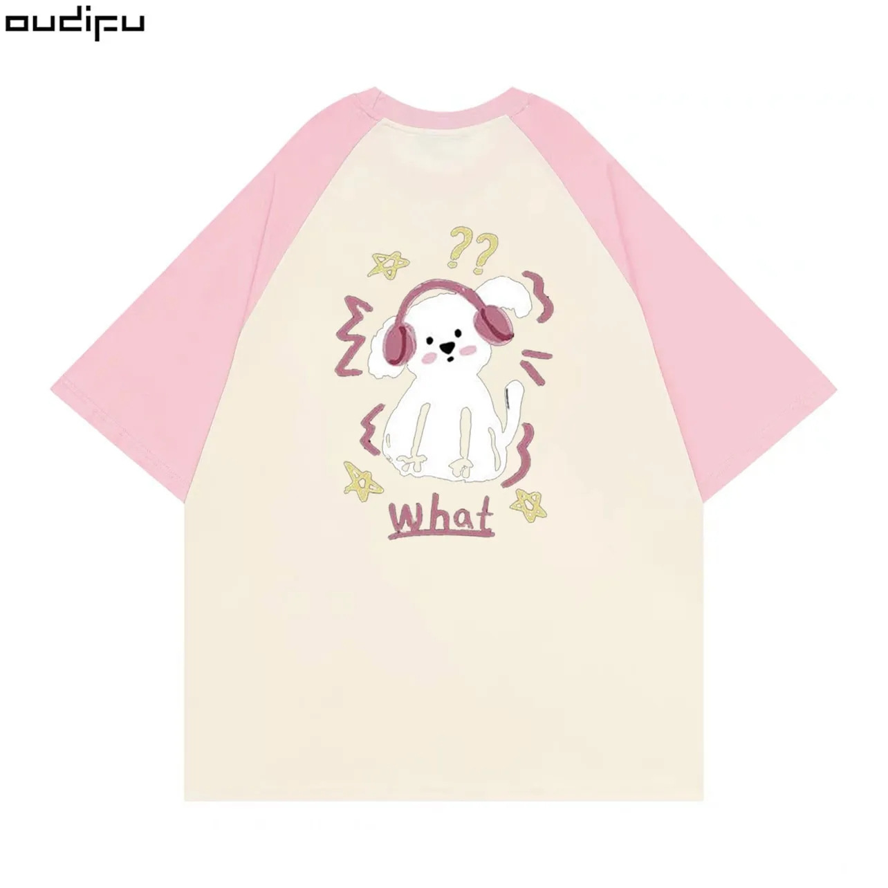 纯棉插肩袖短袖t恤女新款夏小众设计初中生宽松撞色拼接上衣
