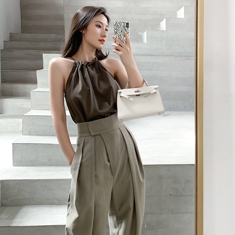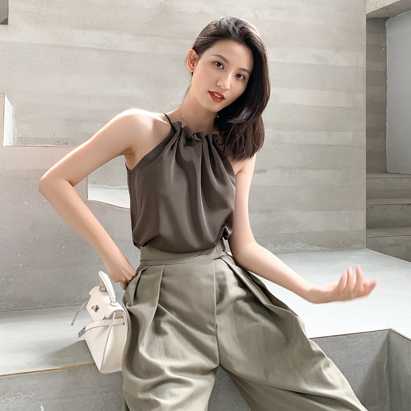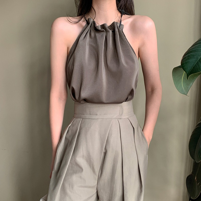 无袖上衣女新款夏小众设计感心机气质雪纺挂脖露肩背心外穿潮
