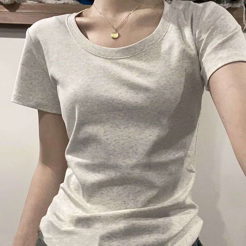 正肩纯全棉上衣t恤女短袖百搭基础款修身显瘦甜辣风洋气打底衫潮