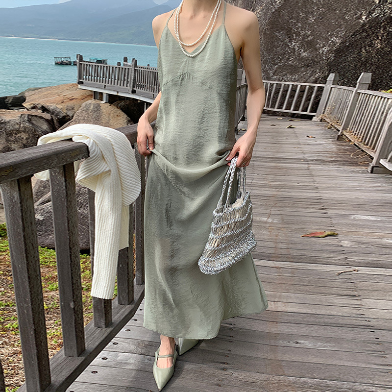 NEIHE内赫高级人丝性格露背仙女气质吊带裙女春夏长裙