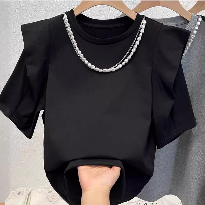 欧洲站欧货短袖T恤女夏小众设计时髦洋气纯棉体恤高级感潮牌