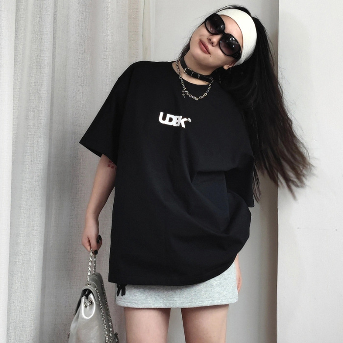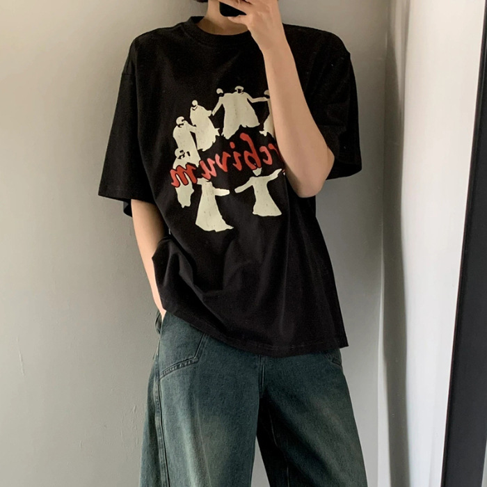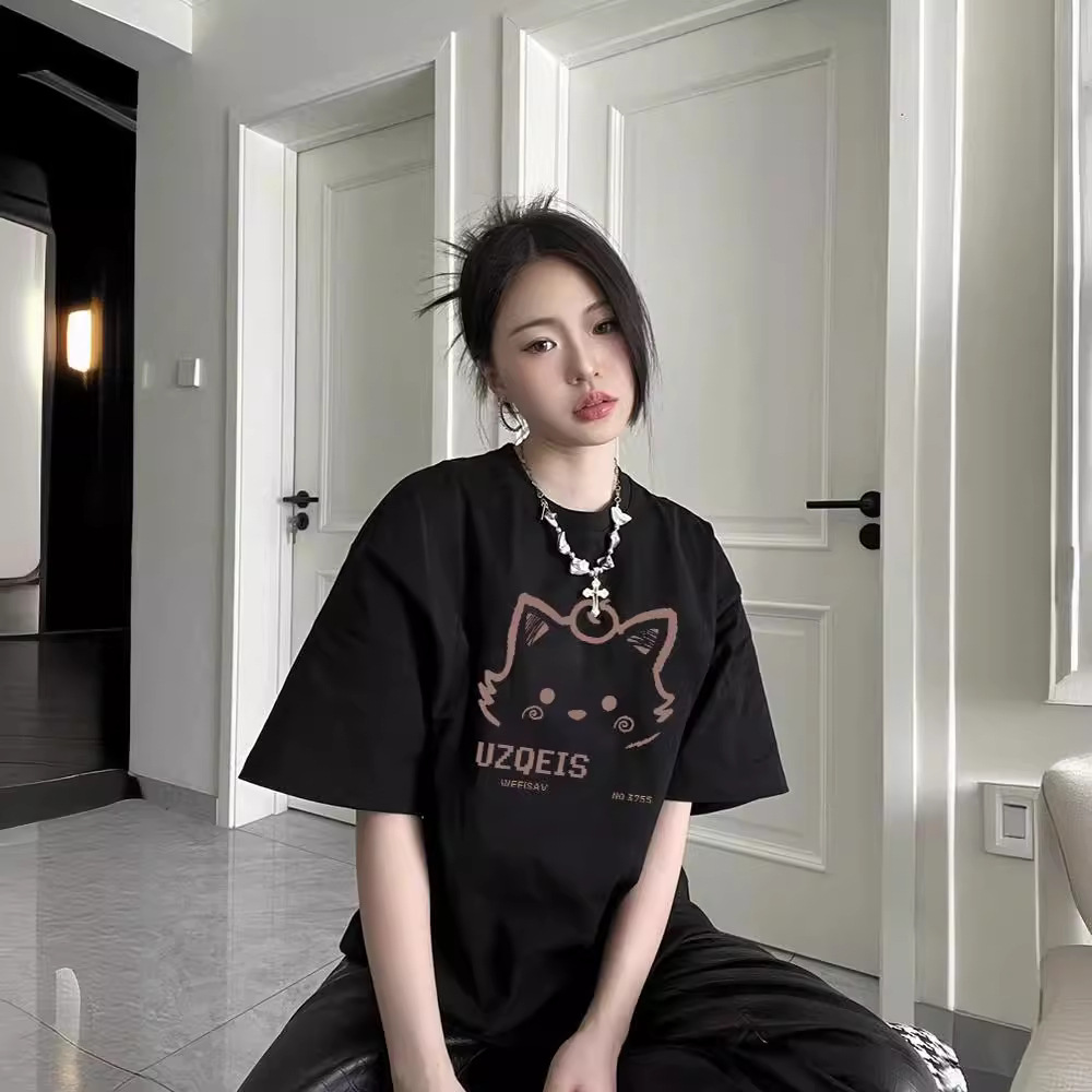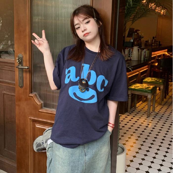 美式情侣纯棉短袖t恤女新款夏季200斤大码胖妹妹mm复古半袖上衣潮
