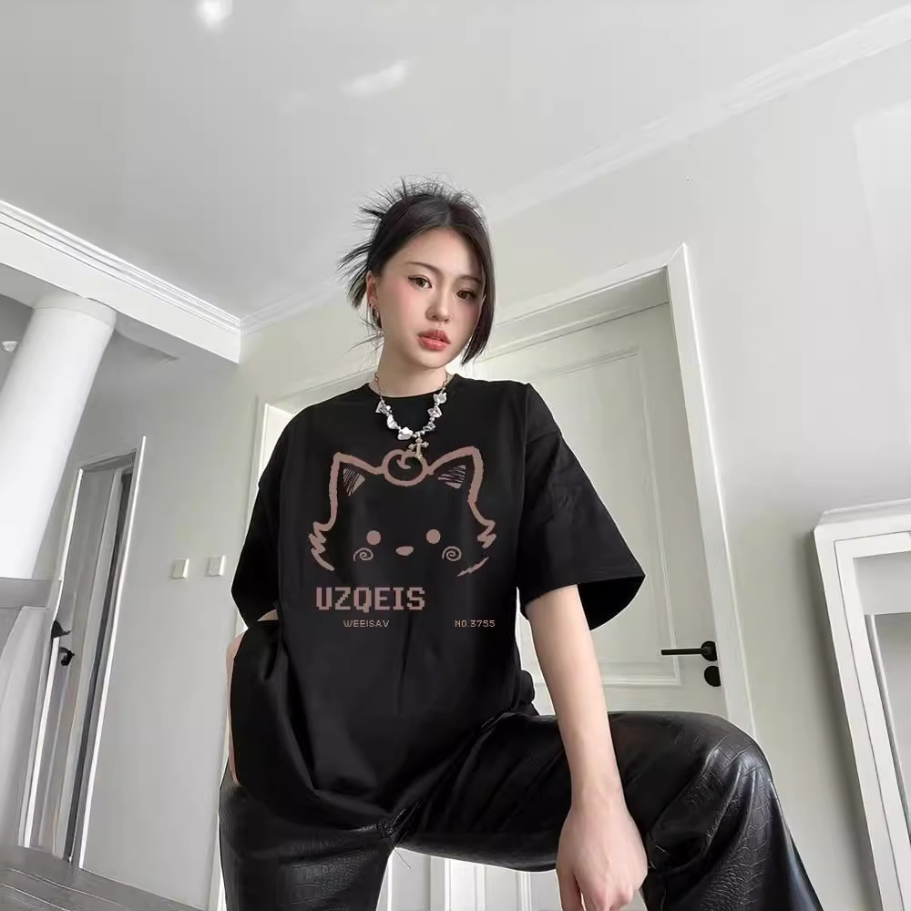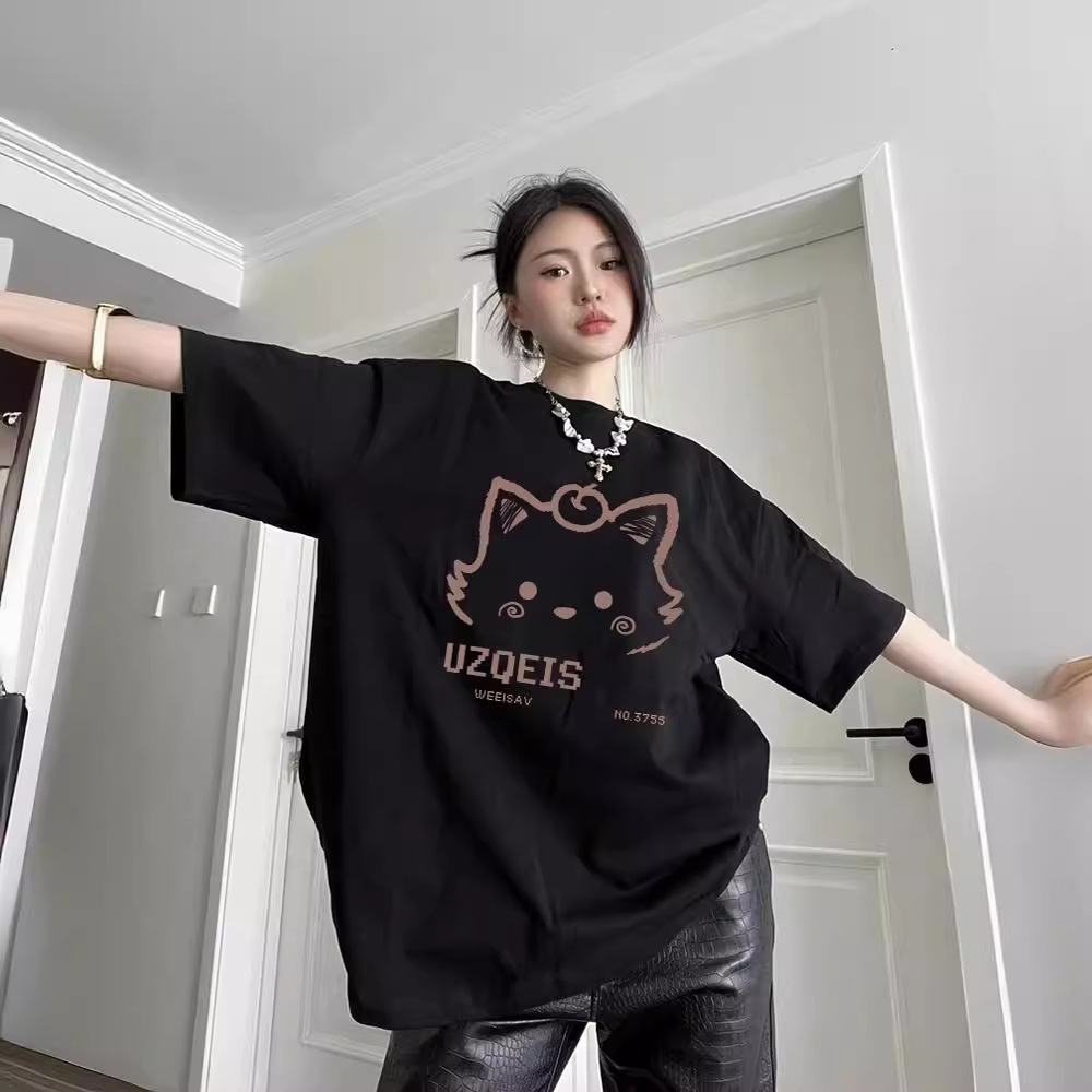 夏季新款短袖体恤正肩宽松韩版大版t恤上衣藏肉女生学院风ins
